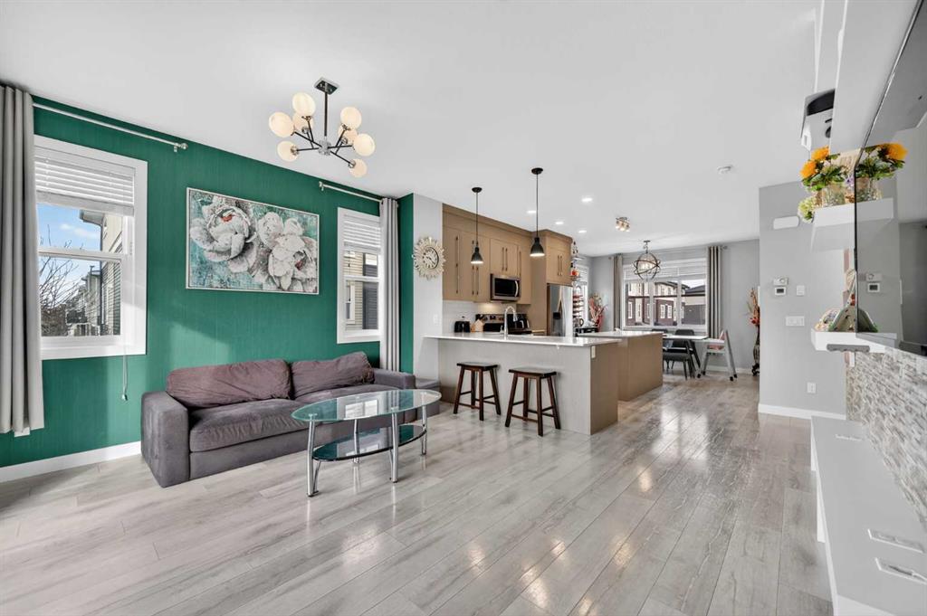 ** NO GST PAYABLE ON THE PREOWNED HOME ** Beautifully curated, Almost Brand New Feel, and immaculately maintained by the original owner ** INDOOR PARKING – HEATED ATTACHED SIDE BY SIDE 2 CAR GARAGE plus easy front street parking** This trendy 4-bedroom 3-story 1586+ SF townhome end unit is ideally located in the community of Cornerstone and close to the many amenities – transit, parks, shopping, pathways, dog parks, daycare and FUN! The ground floor features a sizable main entrance, a bonus den/office/bedroom, storage, and convenient access to your garage. The spacious upper main living area includes beautiful laminate wide plank flooring, a large living room, a stylish kitchen with quartz counter tops/upgraded tile kitchen backsplash/rich wood style cabinets with trims/upgraded stainless steel appliances (smooth top stove, OTR microwave, quiet dishwasher, french door fridge with front water dispenser) plus an extended peninsula island with undermount sink and a flush eating bar.. A sizeable outdoor balcony is off the family-approved living room and offers a BBQ area with a gas line. The upper floor features three good-sized bedrooms, a laundry room and two full bathrooms. BONUS: The primary bedroom layout features a private en-suite and a large walk-in closet. This trendy townhome features a modern dĂ©cor palette and offers everything you need, with a functional yet stylish design. A possession date of July 24, 2025, is available! Call your friendly REALTOR(R) to book a viewing!