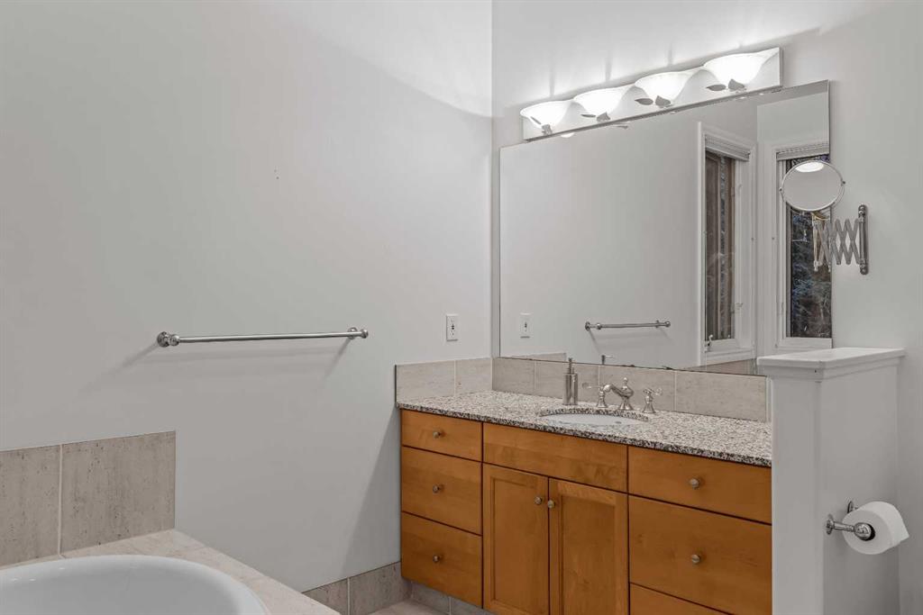 The lower level welcomes family and guests with a spacious family room and three well-appointed bedrooms. Upstairs, an additional guest room—or a comfortable home office—adds flexibility to the 4,341 sq ft floor plan. Timeless mountain-inspired finishes, including a striking Rundle stone fireplace, lend warmth and sophistication throughout.