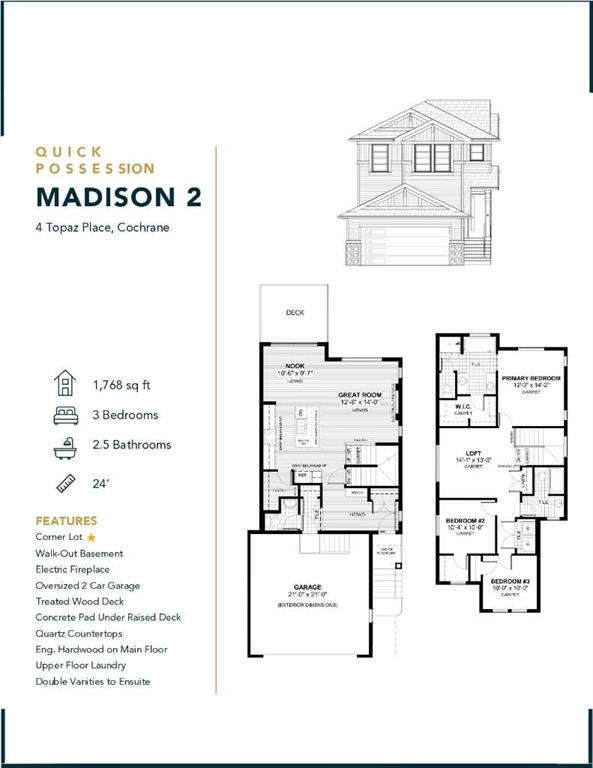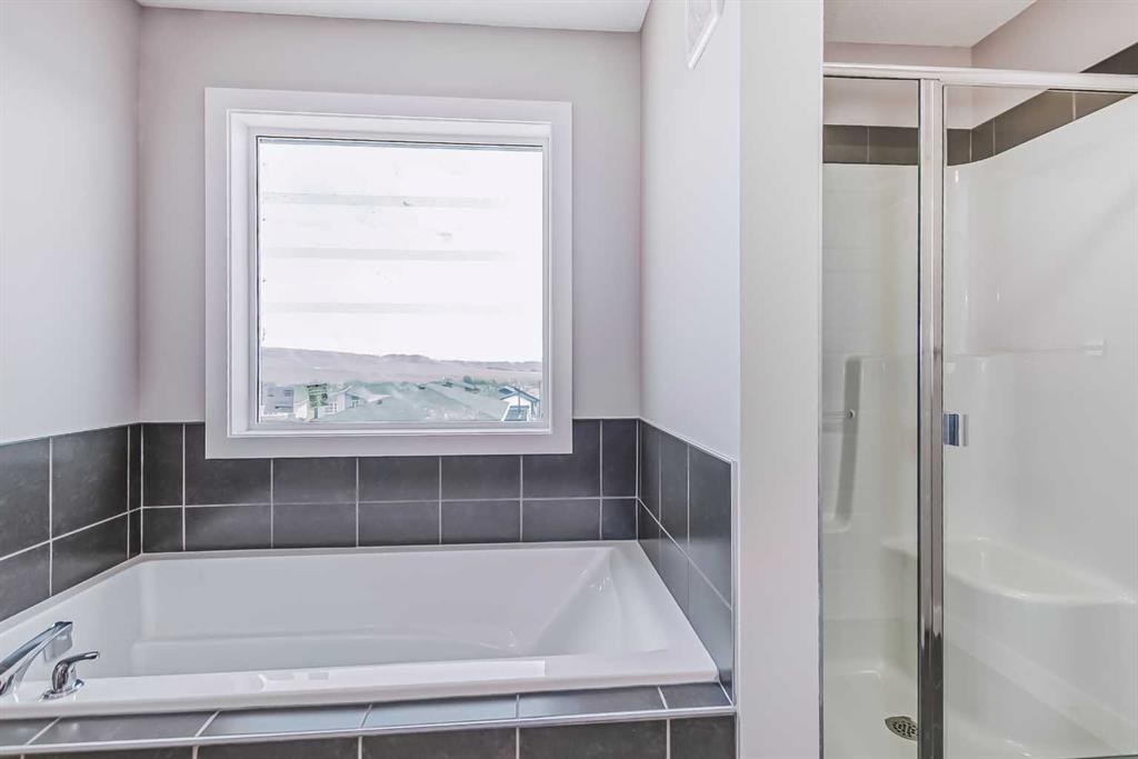 BRAND NEW HOME by Douglas Homes, Master Builder in central Greystone, short walking distance to parks, the Bow River, major shopping & interconnected pathway system. Featuring the Madison 2 on a corner lot, south facing back yard, walkout basement, deck off the main floor accented by built out columns on an R-MX zoned lot for POTENTIAL future lower level suite. NOTE: a secondary suite would be subject to approval and permitting by the city/municipality. Located on a quiet street, very close two Children’s Play Parks & paved back lane. This gorgeous 3 bedroom, 2 & 1/2 half bath home offers over 1760 sq ft of living space. Loads of upgraded features in this beautiful, open floor plan. The main floor greets you with a grand glazed 8′ front door, soaring 9′ ceilings, oversized windows , & 8′ 0″ passage doors. Distinctive Engineered Hardwood floors flow through the Foyer, Hall, Great Room, Kitchen & Nook adding a feeling of warmth & style. The Kitchen is completed with an oversized entertainment island (7’0″ single level island) & breakfast bar, roomy closet pantry with 8’0″ French Door , Quartz Countertops, 42″ Cabinet Uppers accented drop bulkhead, Pots & Pans Drawers, soft close doors & drawers throughout, new stainless appliance package including Side by Side Fridge with Ice and Water, Gas Range, Chimney Hood Fan, Built-In Microwave in the island & Built-In Dishwasher. The main floor is completed with an expansive, open Great Room & Nook finished with over height windows & Napoleon “Entice” fireplace. Ascending the second floor there is a large “U” shaped staircase complimented by black metal spindle railing naturally light by a large window. Upstairs you’ll find a generous Primary Bedroom with 5 piece Ensuite including dual, separate, Quartz vanities with undermounted sinks, oversized 4’0″ x 3’0″ shower, 6’0″ soaker tub with large window above, private water closet, & ceramic tile flooring. There is also a generous sized walk-in closet accessed from the Ensuite. The 2nd floor is completed by a spacious, centralized Family Loft & two additional, good size bedrooms, one with WIC. The 2nd & 3rd bedrooms have the convenient access to the main bath with Quartz countertop, undermounted sink & tile flooring. You’re certain to love the convenience of the 2nd Laundry completed with large access doors, light & tile flooring. This is a very popular plan, great for young families or for the upsizing crowd. Spacious, Beautiful and Elegant! The perfect place for your perfect home. Call today! Photos are from prior build & are reflective of fit, finish & included features. Note: Front elevation of home & interior photos are for illustration purposes only. Actual elevation style, interior colors/finishes, & upgrades may be different than shown & the Seller is under no obligation to provide them as such. Directions: Come to the Show Home first at 500 River Avenue. THIS HOME IS UNDER CONSTRUCTION.