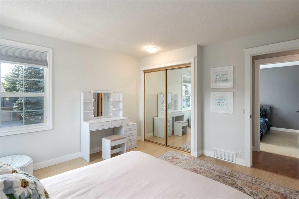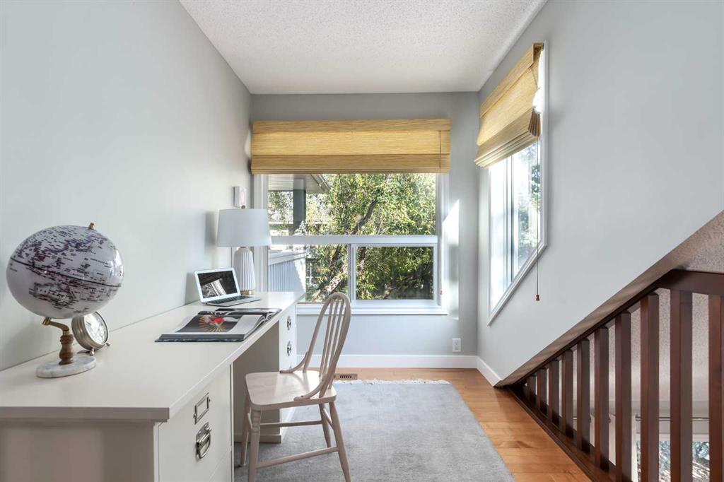 Outdoors, the setting is nothing short of idyllic. A lower deck opens to a fully landscaped yard framed by mature greenery, offering the perfect stage for gatherings, celebrations, or moments of solitude. Steps from endless trails and the natural serenity of Fish Creek Park, it offers not just a place to live, but a lifestyle that harmonizes luxury, leisure, and connection to nature.