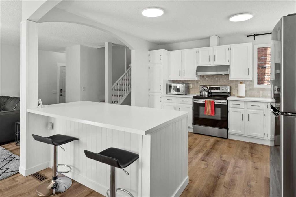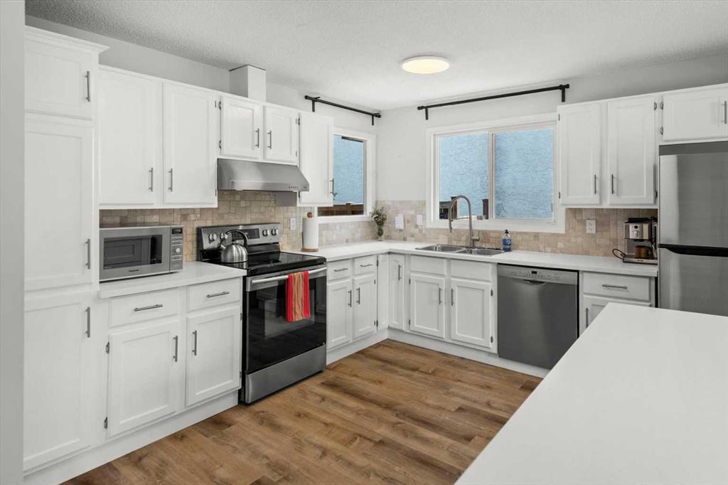 **Open House Feb 1st, 12pm-2pm** Hey Y’all! Welcome to 40 Bergen! Tucked away on a quiet cul-de-sac and backing onto lush green space, this fantastic 4-level split is ideally located in the heart of Beddington. As you enter the home you’ll immediately notice the many thoughtful upgrades throughout. The kitchen has been fully renovated, now featuring modern cabinetry, stainless steel appliances, tile flooring, and a stylish bright and functional layout. New vinyl plank flooring has been installed throughout both the main and lower levels. The main level also features a spacious and bright living room with south facing windows that seamlessly flows into the kitchen and dining area, perfect for entertaining or relaxing. Upstairs, you’ll find three generously sized bedrooms and two full bathrooms complete with vanities, tiled floors and showers, and medicine cabinets offering additional storage. The third level includes a large rec room with a floor-to-ceiling brick fireplace, a side entrance to the backyard, a renovated 2-piece bathroom, and a fourth bedroom, offering a fresh, updated space for guests or family members. There’s also a large laundry and storage room for added functionality. And the very lower level basement is ready for your finishing touches, an in-home gym or provides additional storage for your Christmas decorations and such. Additional updates from the previous owners include replaced windows, an updated roof, and an oversized double detached garage, ideal for extra vehicles or workshop space. Just 1.5 blocks from the off-leash dog park, 5 blocks to local schools, and only a few minutes’ walk to the amenities on Centre Street, the location offers unbeatable accessibility and low maintenance landscape. With easy routes to both Centre Street and Deerfoot Trail, commuting across the city is quick and convenient. This is a move-in ready home in an incredible location—don’t miss your chance to own a beautifully upgraded property with room to grow in Beddington! Book your showing today!