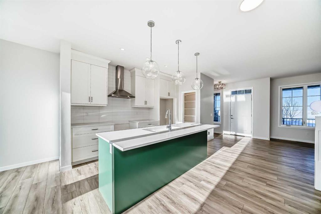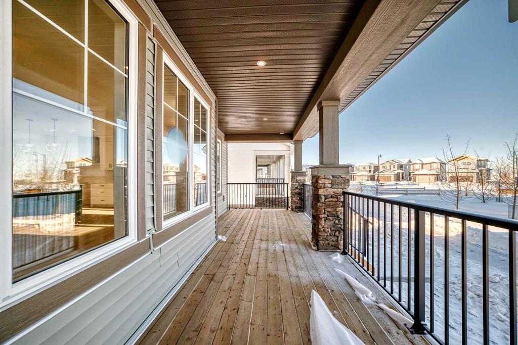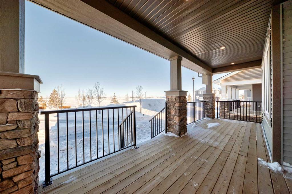 Step into The Emerson, a porch-front home that blends standout curb appeal with the kind of layout that simply works for everyday family life. The showstopping 232 sq ft covered front porch creates the perfect indoor/outdoor extension—ideal for morning coffee, evening chats with neighbours, or a practical “landing zone” for boots and outdoor gear. Even better, the home’s park-facing location delivers unobstructed views and a streetscape that feels like an oasis right outside your front steps. Inside, the open-concept main floor is designed for connection, with a central kitchen anchoring bright living and dining spaces that flex with your lifestyle—whether it’s family movie night, homework at the table, or hosting friends. Oversized front-and-back windows flood the home with natural light all day long, creating an airy, welcoming feel from the moment you enter. The kitchen is beautifully appointed with full-height upper cabinets, two-tone cabinetry, quartz countertops, soft-close doors, an upgraded chimney-style hood fan, and a built-in microwave, plus a gas line to the range for those who love to cook. Function meets convenience with a rear mudroom, a walk-in pantry, and main floor laundry—perfect for multitasking and keeping day-to-day routines running smoothly. Upstairs, the vaulted owner’s suite offers a true retreat, complete with a spacious walk-in closet and a spa-inspired 5-piece ensuite. A thoughtful winged bedroom design adds privacy for family members or guests, and upgraded main floor railing adds to the home’s polished look. And the feature that truly sets this property apart: a triple detached garage with a full driveway and parking pad, offering parking for up to 6 vehicles—a rare and valuable setup. Add in a gas line for the BBQ, park-side living, and a floor plan built for real life, and you’ve found a home that checks every box. Limited opportunities like this don’t come along often—don’t miss it. Living in Vista Crossing means enjoying the best of both worlds: the convenience of city living just a short drive from Calgary, paired with the charm and slower pace of small-town life in Crossfield. This thoughtfully planned community fosters a strong sense of belonging and connection, where neighbours look out for one another and life revolves around family. Vista Crossing offers endless opportunities for recreation with its 4 kms of walking trails, 5 acres of protected wetlands, 20 acres of green spaces, and a community garden. Sports enthusiasts will love the mini soccer field, outdoor hockey rink, skateboard park, and sports fields.
