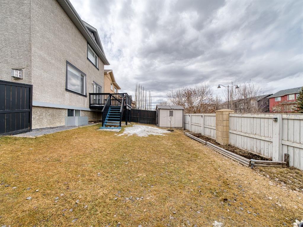 Situated on a large pie-shaped lot, the backyard offers plenty of space to enjoy, complete with a storage shed and room for outdoor living, play, or relaxation.