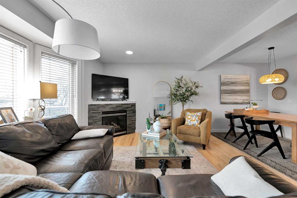 Are you searching for an updated, well-managed townhome on Calgary’s west side? Welcome to 40 Patina Terrace SW in the highly desirable community of Patterson. This exceptional home checks all the boxes. Tucked away in an extremely private complex, it offers peace and quiet while still being just a 15-minute commute to downtown. The attached tandem garage provides parking for two vehicles plus ample storage, which is rare in this segment. Complete with epoxy flooring and insulation, this versatile space can easily function as both a garage and home gym. Pride of ownership is evident throughout, with hardwood flooring, including the stairs, leading up to the bright and inviting main level. The renovated kitchen features quartz countertops, stainless steel appliances, and upgraded taps and fixtures. The open-concept main floor offers a spacious living and dining area centered around a cozy gas fireplace, making it ideal for entertaining. Enjoy both an east-facing deck with beautiful morning sun and a west-facing rear deck that opens onto the central green space, often visited by deer. Upstairs, the updated railings and banister continue the home’s polished feel. The beautifully renovated bathroom has been completed with no expense spared, showcasing elegant fixtures, a soaker tub, standalone shower, tiled floors, and stone countertops. The primary bedroom faces east, welcoming the morning sun while staying cooler in the afternoon. A second bedroom and a generous bonus room complete the upper level, with the bonus room offering easy potential to be converted into a third bedroom if desired. This location is exceptionally quiet, and with the properties across the street facing east, the home enjoys an added sense of privacy. Patterson is one of Calgary’s premier west-side communities, offering quick access to downtown, Sarcee Trail, and Stoney Trail. Opportunities in this sought-after complex are rare. Book your private showing today.