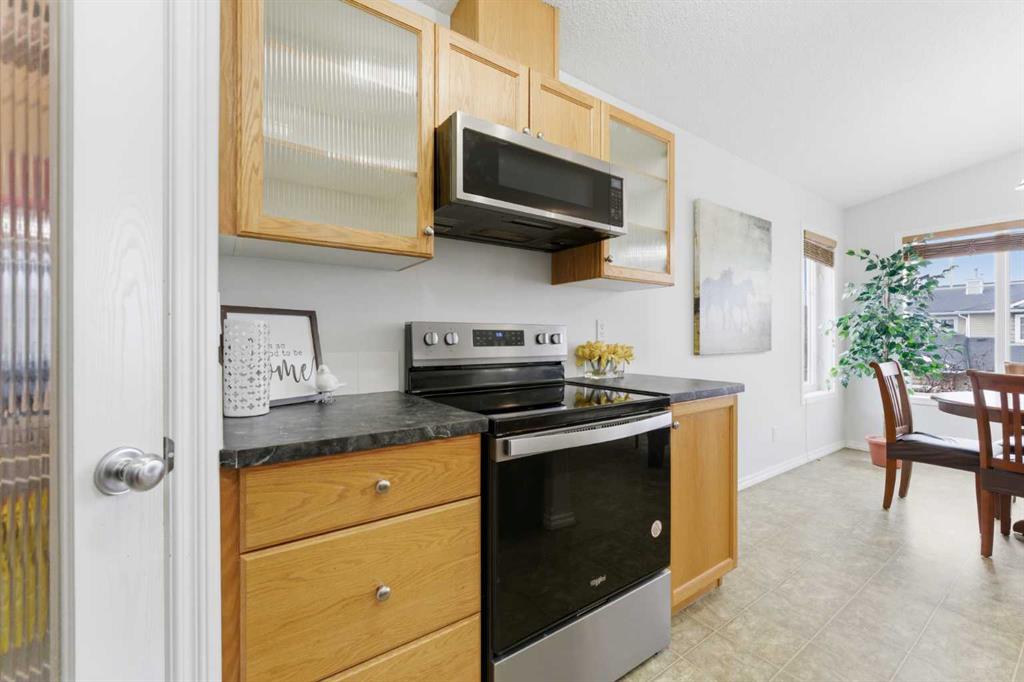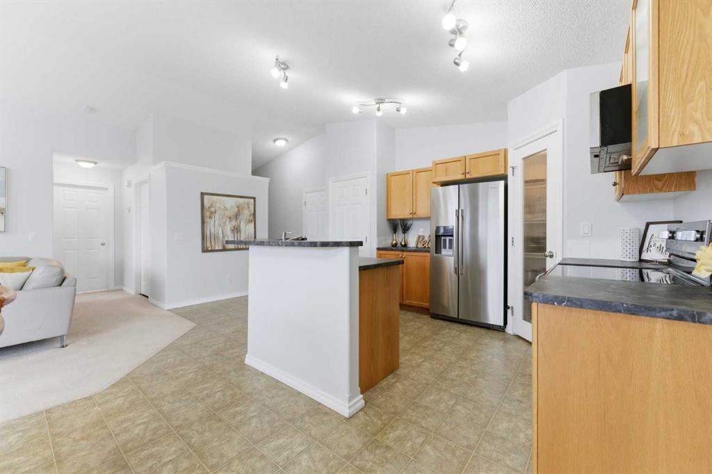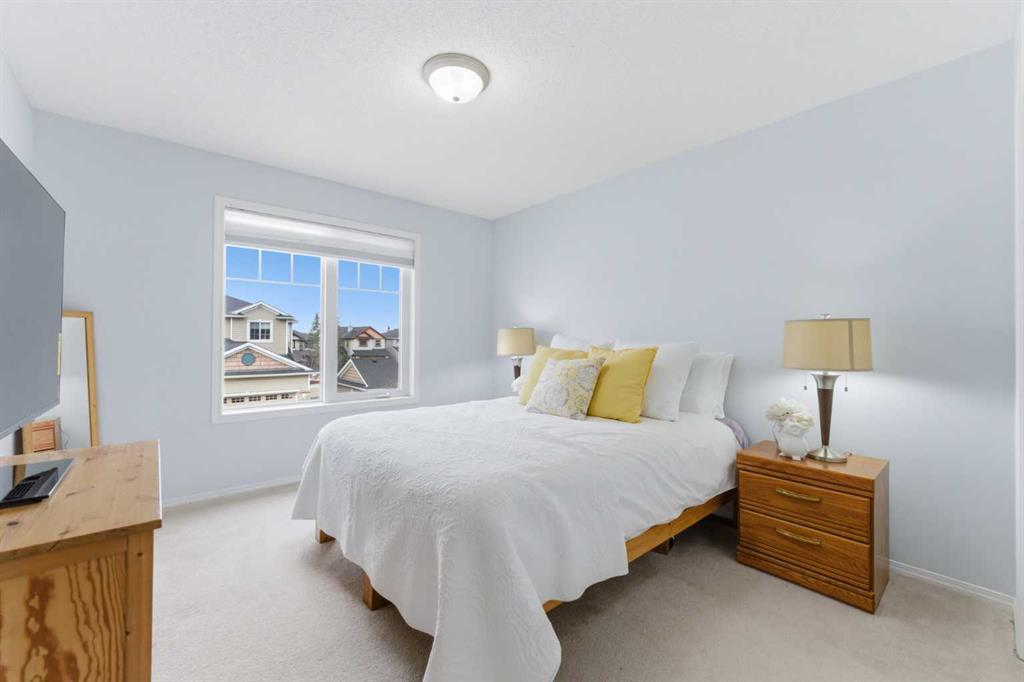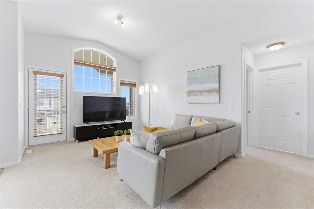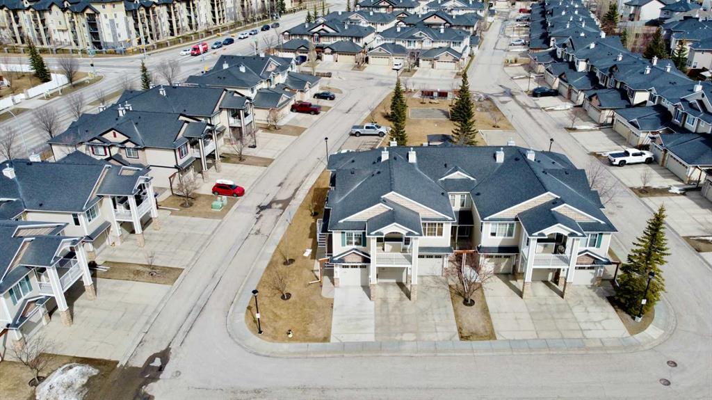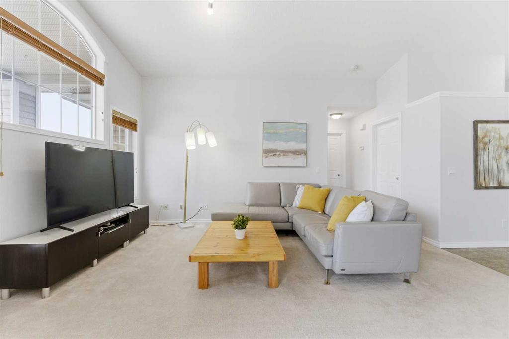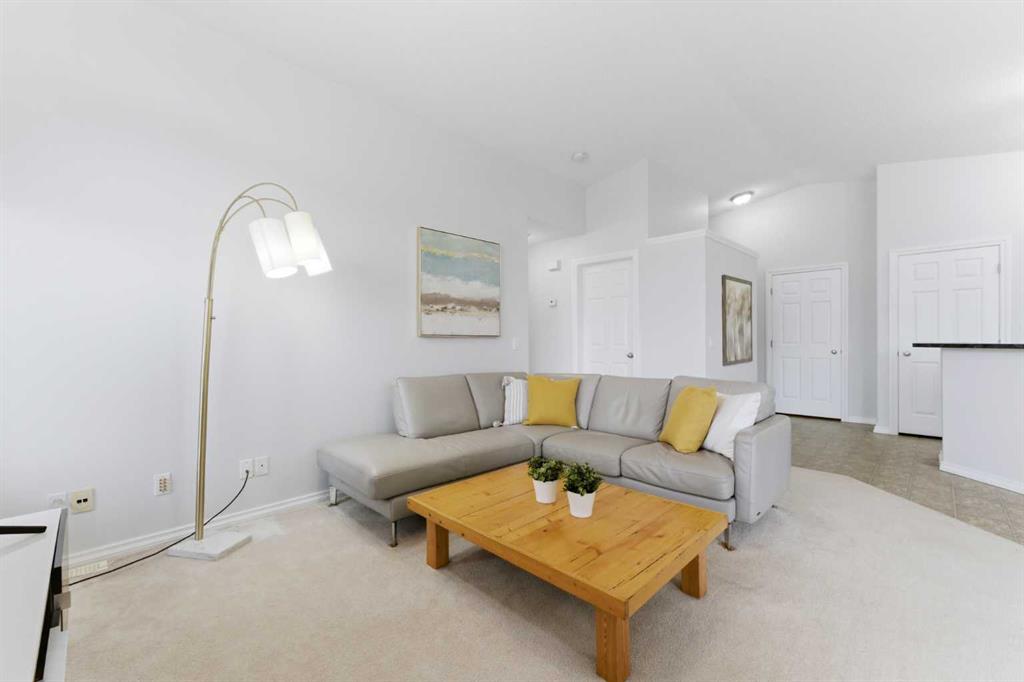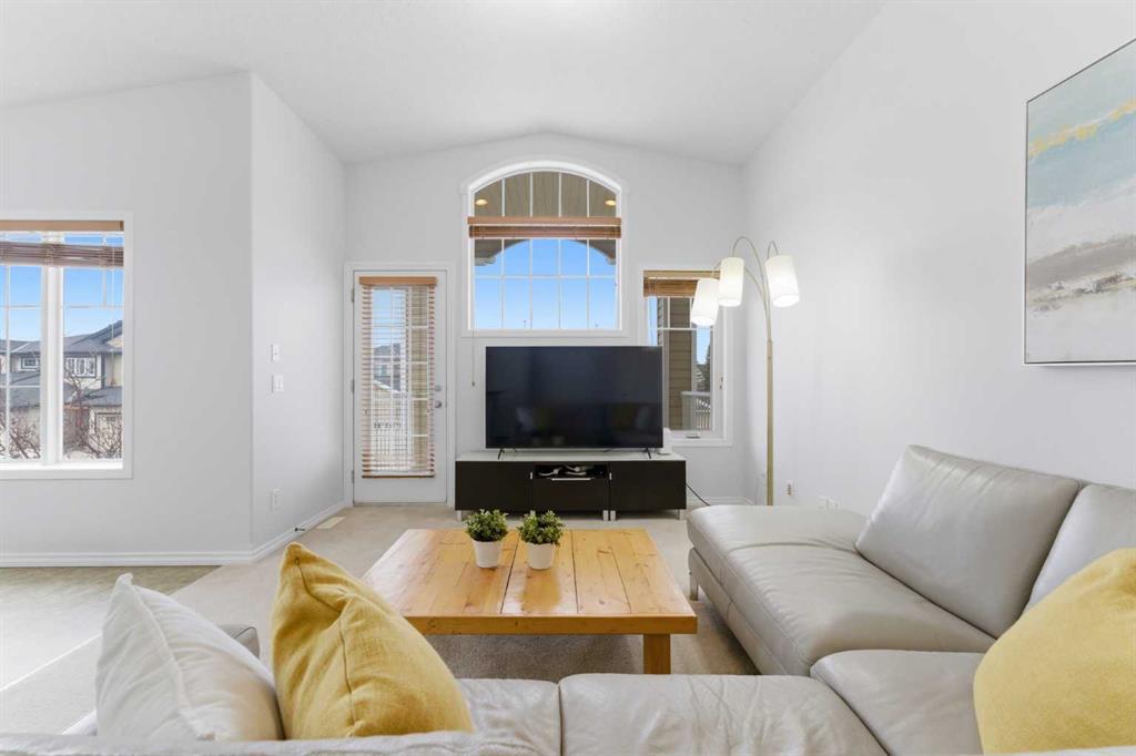 Welcome to this stunning bungalow-style townhouse in the highly sought-after community of Royal Oak, ideally located close to schools, shopping, transit, and all amenities. This bright and inviting home features an open-concept floor plan with vaulted ceilings and large windows throughout, creating an airy, elevated living space with no one above you. The spacious living and dining area leads to a private, generously sized patio with sunny south and southwest exposure. The well-appointed kitchen offers ample cabinetry, a center island, newer Whirlpool appliances (just 2 years old), a corner pantry, plus an additional second pantry for exceptional storage. This home includes: 2 bedrooms, including a king-sized primary retreat, second bedroom with walk-in closet, full bathroom, in-suite laundry, and rough in for fireplace. Additional features: Corner unit with extra windows for abundant natural light, single attached garage, plenty of visitor parking, low condo fees and common greenspace directly behind the unit. Enjoy the convenience of walking distance to schools, shopping, and the new YMCA, with quick access to transit including a direct bus to the Tuscany LRT station. Just 15 minutes to downtown and easy access west to the mountains. This is elevated living at its finest—don’t miss this exceptional opportunity.