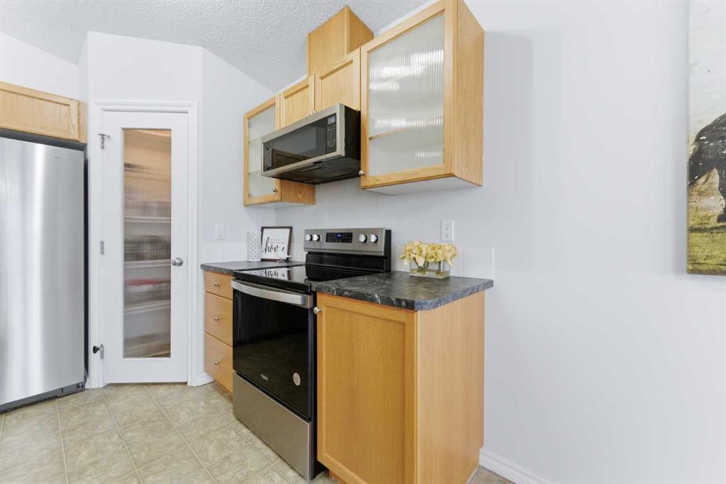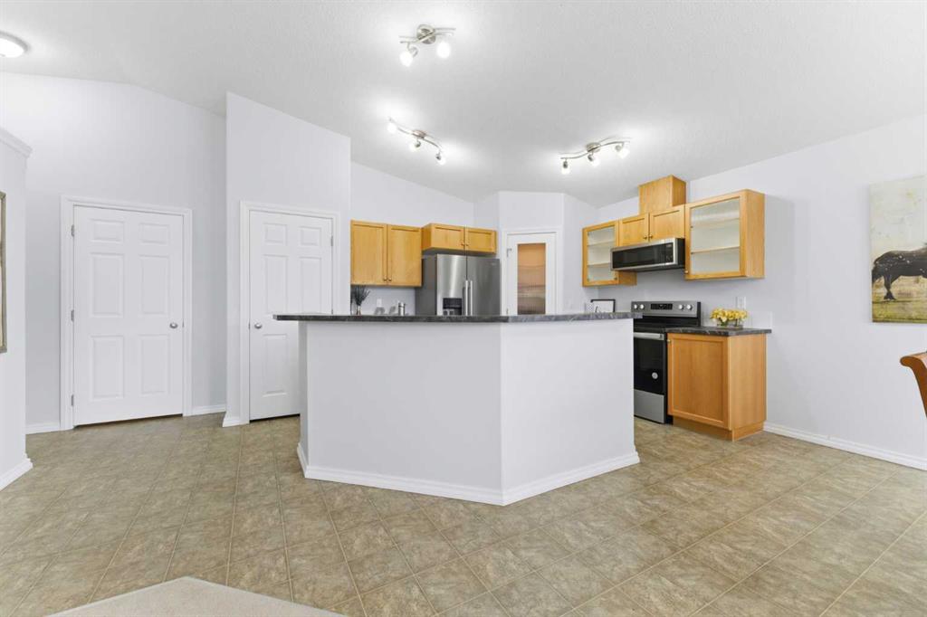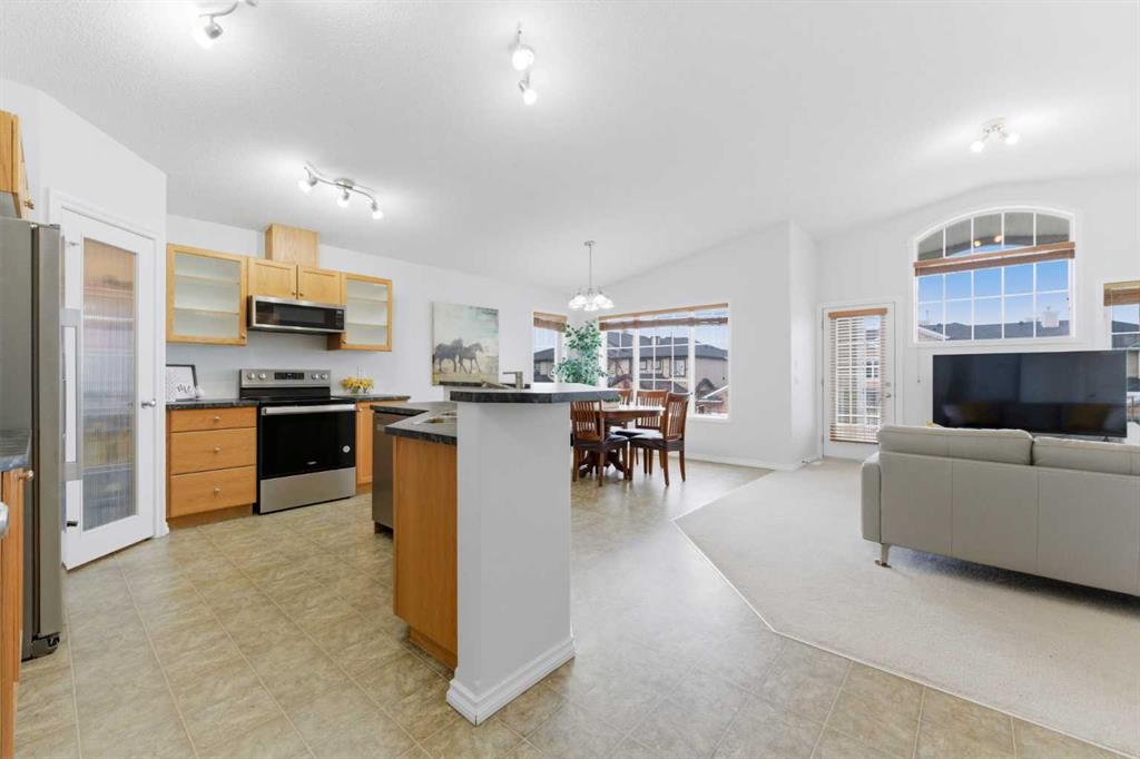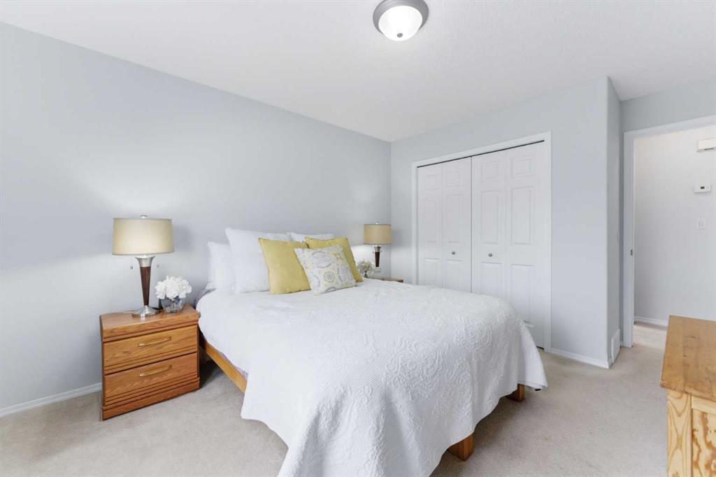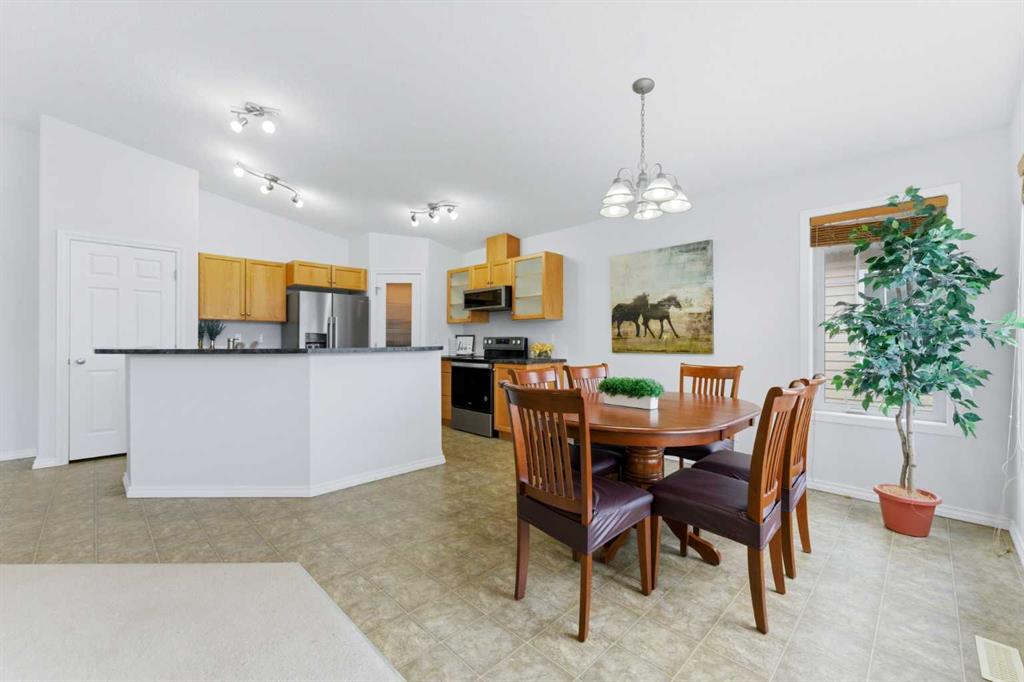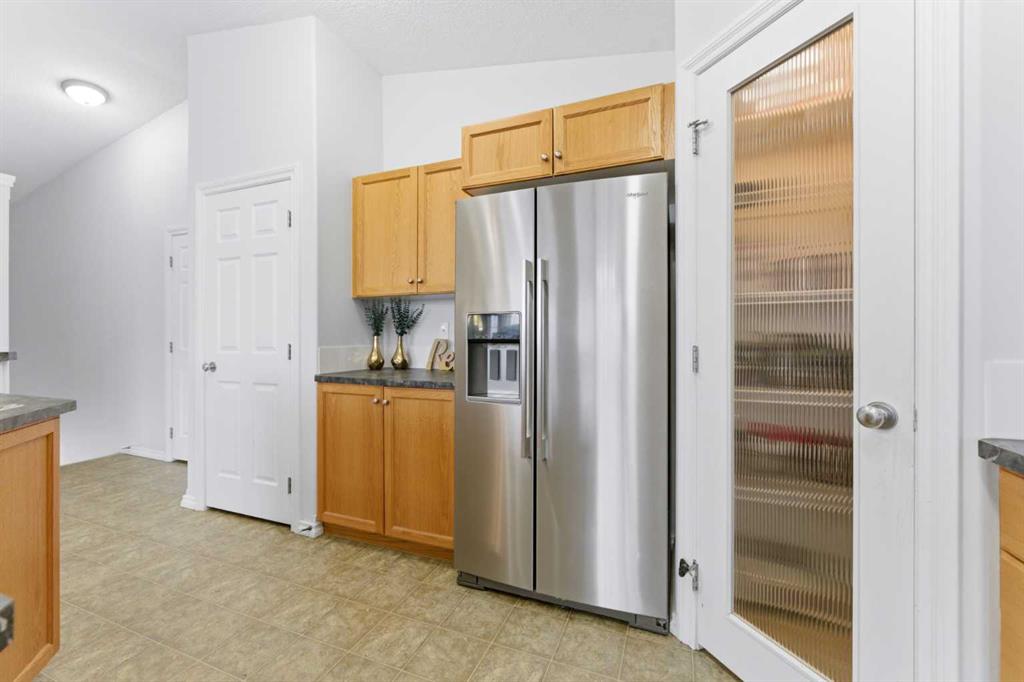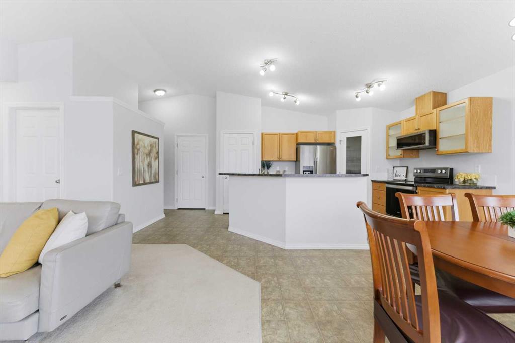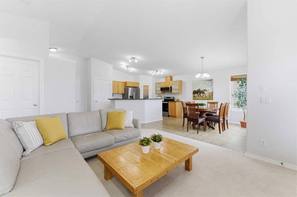 Welcome to this stunning bungalow-style townhouse in the highly sought-after community of Royal Oak, ideally located close to schools, shopping, transit, and all amenities. This bright and inviting home features an open-concept floor plan with vaulted ceilings and large windows throughout, creating an airy, elevated living space with no one above you. The spacious living and dining area leads to a private, generously sized patio with sunny south and southwest exposure. The well-appointed kitchen offers ample cabinetry, a center island, newer Whirlpool appliances (just 2 years old), a corner pantry, plus an additional second pantry for exceptional storage. This home includes: 2 bedrooms, including a king-sized primary retreat, second bedroom with walk-in closet, full bathroom, in-suite laundry, and rough in for fireplace. Additional features: Corner unit with extra windows for abundant natural light, single attached garage, plenty of visitor parking, low condo fees and common greenspace directly behind the unit. Enjoy the convenience of walking distance to schools, shopping, and the new YMCA, with quick access to transit including a direct bus to the Tuscany LRT station. Just 15 minutes to downtown and easy access west to the mountains. This is elevated living at its finest—don’t miss this exceptional opportunity.