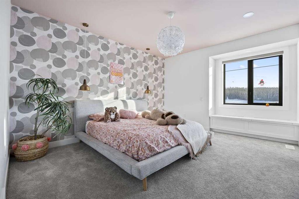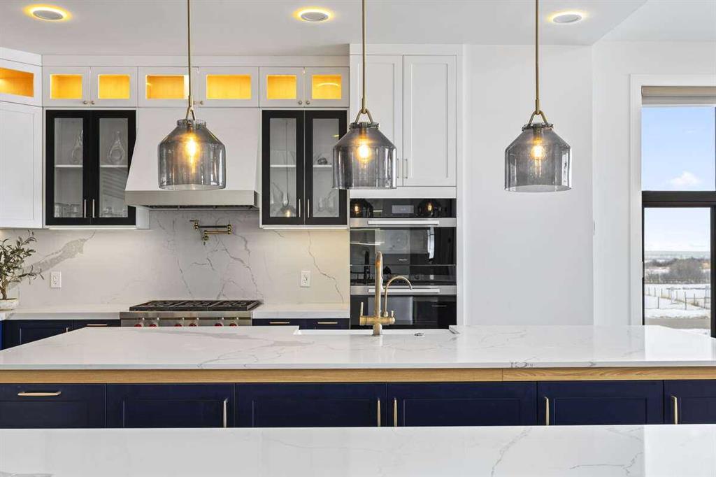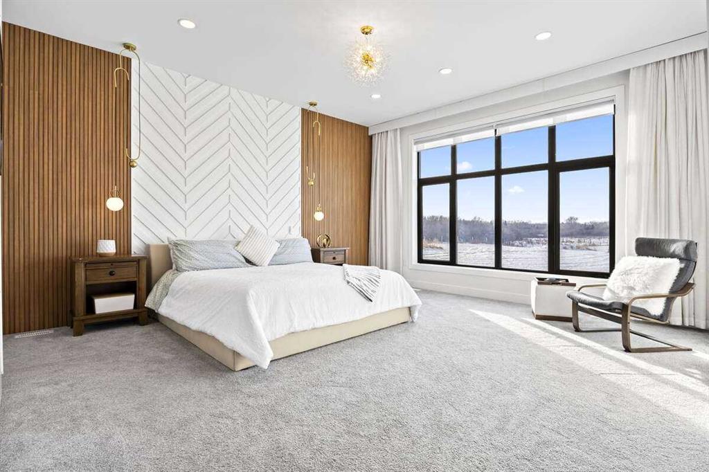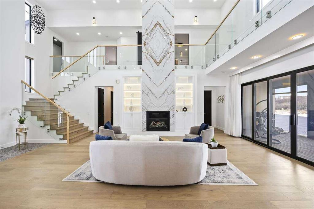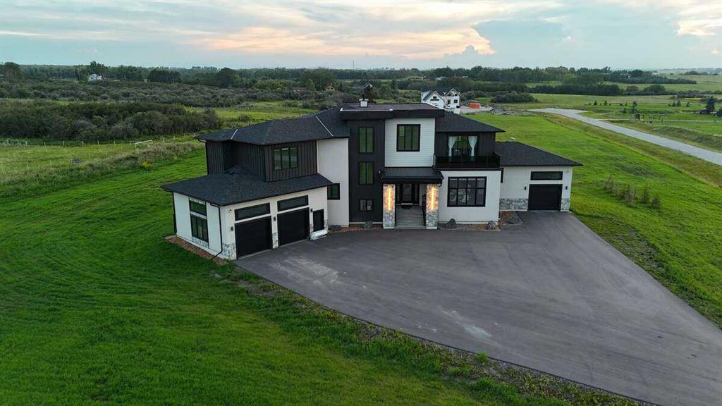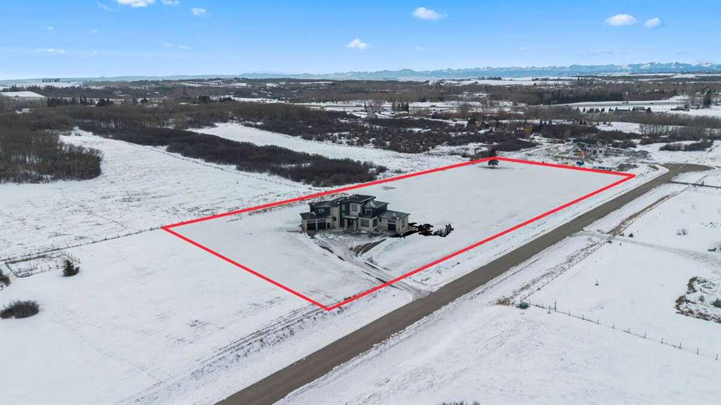 Welcome to an extraordinary blend of modern elegance and countryside charm. Built in 2023, this stunning 6-bedroom, 5.5-bathroom estate offers over 7,200 sq. ft. of meticulously designed living space, nestled on a picturesque 5-acre property. More than just a home, it’s a peaceful retreat surrounded by nature, yet conveniently close to Calgary’s South Campus hospital, top-rated schools, and urban amenities, offering the perfect balance of serene country living and city convenience. As you enter through natural flat stone pillars, a grand entryway welcomes you into warm and expansive living areas set against the breathtaking backdrop of the Rocky Mountains. The living room features a towering stone fireplace that serves as a centerpiece, while a glass-surround walkway bathes the space in natural light. Telescoping glass doors seamlessly connect indoor and outdoor spaces, making it ideal for entertaining or relaxing with loved ones. The chef’s kitchen is the heart of the home, featuring double islands perfect for hosting, high-end appliances including a combination steam oven, and two butler’s pantries. These pantries provide ample storage and include access to a hidden workspace and a single garage, adding both functionality and convenience to the kitchen’s design. The main-floor primary suite is a true sanctuary, boasting floor-to-ceiling west-facing windows that frame stunning views. The spa-inspired en-suite includes luxurious stone-accented walls, an oversized soaker tub, and a walk-in shower, while the custom-designed closet caters to a modern lifestyle with ample space and organization. Upstairs, three spacious bedrooms, each with walk-in closets and private bathrooms, provide comfort and privacy for family or guests. A striking glass walkway connects a custom home office and a cozy family room, creating a unique and inviting upper-level retreat. The lower level is designed for both relaxation and activity. Highlights include a home gym with a pro-height basketball hoop, a luxurious steam shower for post-workout relaxation, an additional bedroom, and a versatile flex room that opens directly to the backyard. The outdoor space offers endless possibilities. The expansive backyard is a blank canvas awaiting your vision—whether it’s a vibrant garden, a playground, or even space for animals. The property’s 5-acre expanse ensures privacy and room to customize. Behind the beauty of this estate lies impeccable functionality. Two mechanical rooms house high-end systems, including advanced A/C, on-demand hot water, and multiple furnaces and boilers, ensuring comfort year-round. Premium finishes, custom flooring, and thoughtful details elevate the home’s design. This property is more than a residence—it’s a lifestyle. Whether hosting grand gatherings, seeking a tranquil retreat, or making cherished family memories, this estate delivers it all. Don’t miss your opportunity to own this incredible count