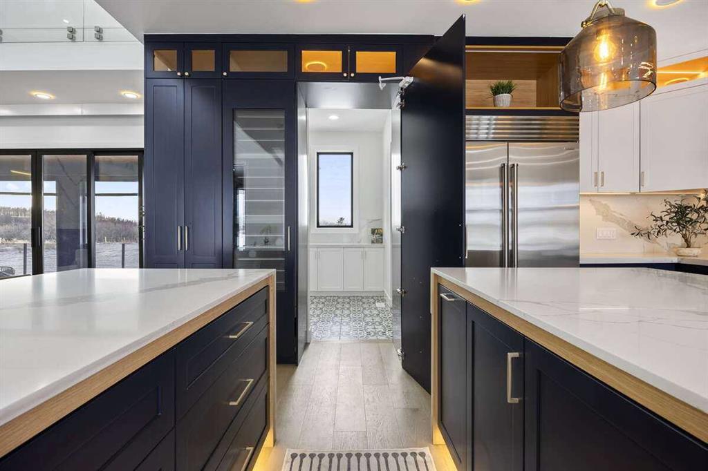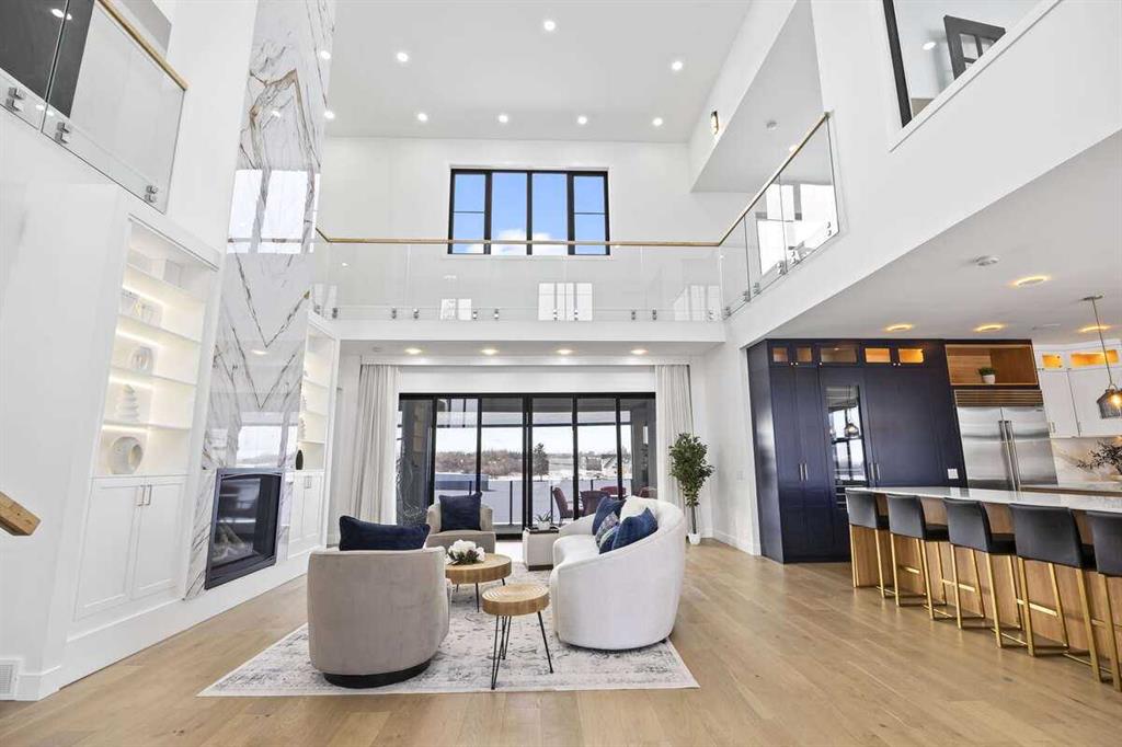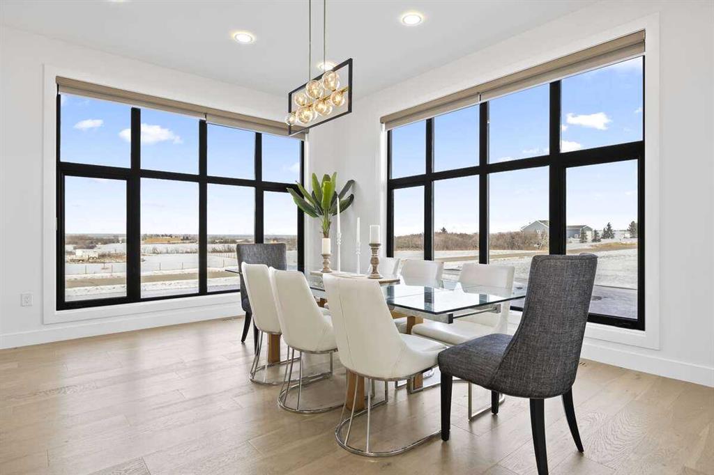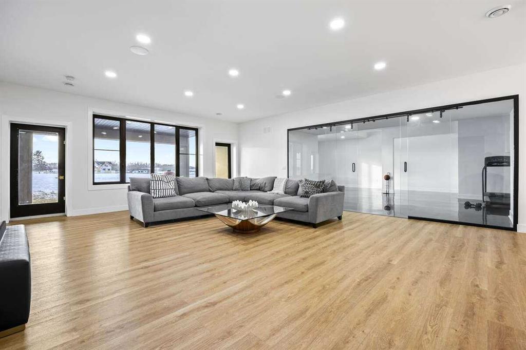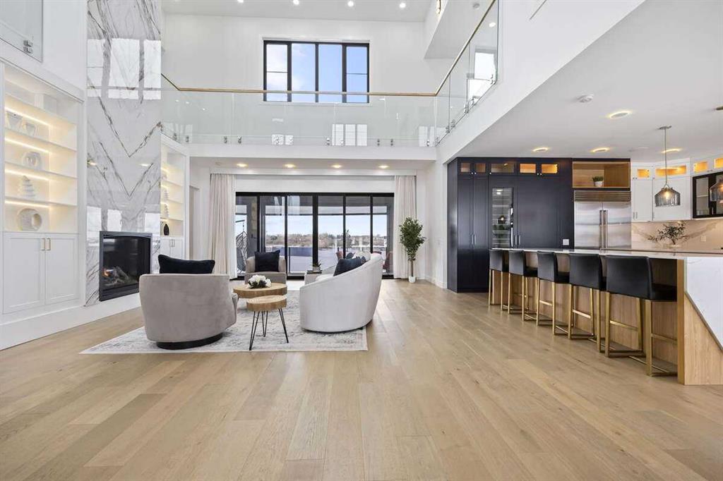 Welcome to an extraordinary blend of modern elegance and countryside charm. Built in 2023, this stunning 6-bedroom, 5.5-bathroom estate offers over 7,200 sq. ft. of meticulously designed living space, nestled on a picturesque 5-acre property. More than just a home, it’s a peaceful retreat surrounded by nature, yet conveniently close to Calgary’s South Campus hospital, top-rated schools, and urban amenities, offering the perfect balance of serene country living and city convenience. As you enter through natural flat stone pillars, a grand entryway welcomes you into warm and expansive living areas set against the breathtaking backdrop of the Rocky Mountains. The living room features a towering stone fireplace that serves as a centerpiece, while a glass-surround walkway bathes the space in natural light. Telescoping glass doors seamlessly connect indoor and outdoor spaces, making it ideal for entertaining or relaxing with loved ones. The chef’s kitchen is the heart of the home, featuring double islands perfect for hosting, high-end appliances including a combination steam oven, and two butler’s pantries. These pantries provide ample storage and include access to a hidden workspace and a single garage, adding both functionality and convenience to the kitchen’s design. The main-floor primary suite is a true sanctuary, boasting floor-to-ceiling west-facing windows that frame stunning views. The spa-inspired en-suite includes luxurious stone-accented walls, an oversized soaker tub, and a walk-in shower, while the custom-designed closet caters to a modern lifestyle with ample space and organization. Upstairs, three spacious bedrooms, each with walk-in closets and private bathrooms, provide comfort and privacy for family or guests. A striking glass walkway connects a custom home office and a cozy family room, creating a unique and inviting upper-level retreat. The lower level is designed for both relaxation and activity. Highlights include a home gym with a pro-height basketball hoop, a luxurious steam shower for post-workout relaxation, an additional bedroom, and a versatile flex room that opens directly to the backyard. The outdoor space offers endless possibilities. The expansive backyard is a blank canvas awaiting your vision—whether it’s a vibrant garden, a playground, or even space for animals. The property’s 5-acre expanse ensures privacy and room to customize. Behind the beauty of this estate lies impeccable functionality. Two mechanical rooms house high-end systems, including advanced A/C, on-demand hot water, and multiple furnaces and boilers, ensuring comfort year-round. Premium finishes, custom flooring, and thoughtful details elevate the home’s design. This property is more than a residence—it’s a lifestyle. Whether hosting grand gatherings, seeking a tranquil retreat, or making cherished family memories, this estate delivers it all. Don’t miss your opportunity to own this incredible count