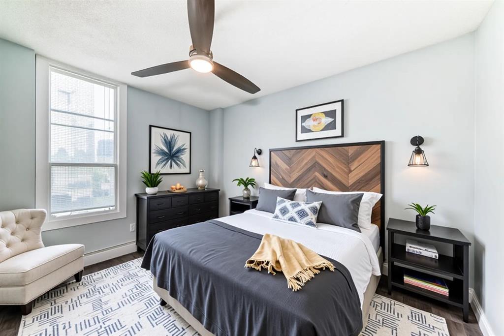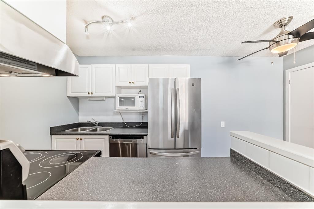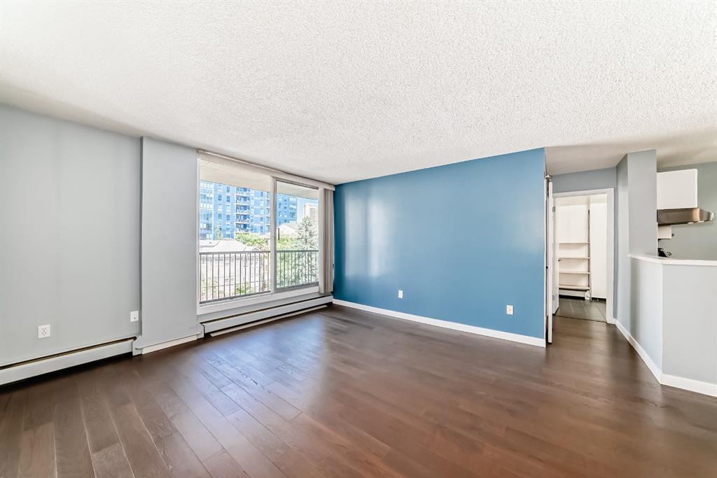 STYLISH 1 BEDROOM CONDO | URBAN LIVING AT ITS BEST | NESTLED IN THE HEART OF INNER-CITY | UNOBSTRUCTED & PANORAMIC VIEWS OF DOWNTOWN | Ideally located in the inner-city Beltline, this condo is just minutes from 17th Ave, Mission and the Downtown core…this location couldn’t be better! With 620 sq ft of bright, functional living space, this home features a private balcony with city views, secured parking, and a titled storage locker — everything needed for convenient & effortless urban living. This charming condo offers a vibrant urban living experience characterized by a mix of trendy amenities, a strong sense of community, and proximity to both downtown and the Elbow River. It’s known for its walkability, diverse dining scene, and access to parks and pathways, making it very desirable. Situated on the 4th floor of this well maintained concrete building, this unit is bright & open, with panoramic views of the city skyline!! This condo is an inviting space with a modern edge…it is cozy, chic & effortlessly livable. With hardwood & tile flooring throughout, the interior is clean and refreshed. The kitchen offers surprising storage, stainless steel fridge, and great counter space — ideal for everyday cooking or entertaining. The living room is flooded with natural light and gives easy access to your balcony for morning coffee or evening unwinding. Tucked away in the corner for privacy, the spacious bedroom includes a generous closet. You’ll also love the full 4-piece bathroom and the bonus in-suite laundry/storage room conveniently. This is a terrific home for anyone seeking a quiet retreat in a vibrant downtown setting…enjoy being steps to the bustling activity on 4th Street and 17th Avenue that are both host to amazing restaurants, trendy pubs, hidden-gem boutiques & an abundance of quaint local shops! This Beltline condo would make for a terrific investment or the perfect place to call home…it is a walker’s & biker’s paradise with a score of 98 & 96 respectively…virtually everything just out your doorstep! Set in a well-maintained concrete building, this is the perfect home for anyone seeking a quiet retreat in a vibrant downtown setting. These don’t come up often so be quick or be sorry!
