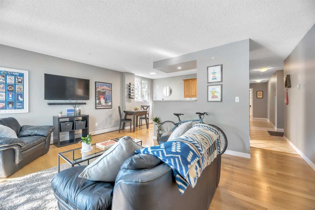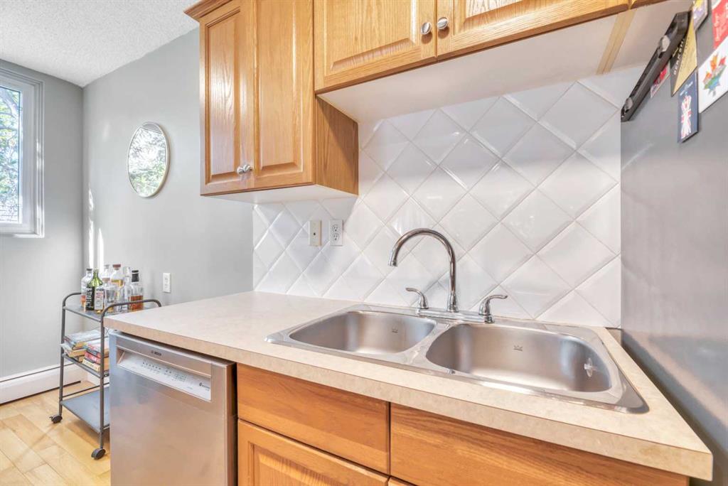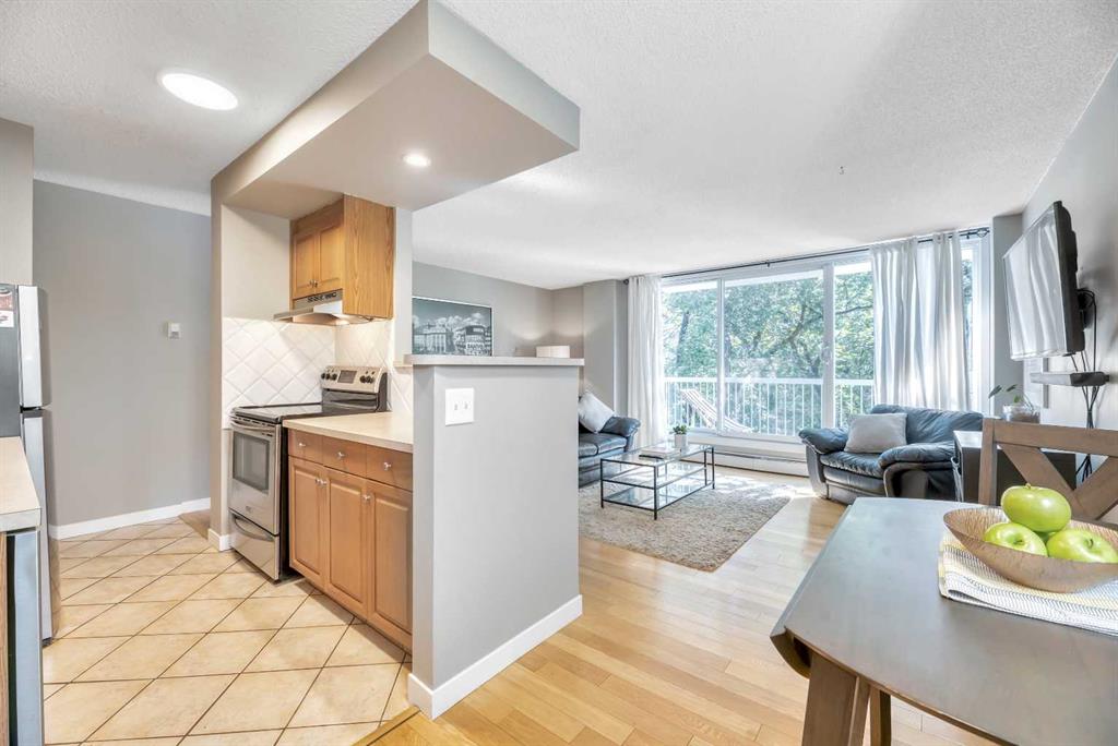 Wow! Welcome to Unit #401: a TOP FLOOR, SOUTH & WEST FACING, CORNER/END UNIT condominium, in the QUIET, CONCRETE CONSTRUCTED complex of “Elbow River Arms”, located in the vibrant, highly walkable, inner-city community of Mission, SW Calgary! This bright, stylish and beautifully RENOVATED property boasts 817 SQUARE FEET OF LIVING SPACE, with 2 LARGE BEDROOMS, 1 FULL BATHROOM, a spacious SOUTH FACING COVERED BALCONY, IN-SUITE LAUNDRY, STORAGE LOCKER (#17), and an ASSIGNED PARKING STALL (#14, with plug-in). This unit has an abundance of south and west facing windows providing endless natural light, and has been tastefully updated in recent years to include a modern kitchen with newer stainless steel appliances, real hardwood flooring, vinyl windows, some upgraded lighting, newer paint, and ceiling fans. Convenience abounds with an additional shared laundry room in the basement, and very reasonable condo fees that include heat/water utilities. Just steps away from Calgary’s best amenities: endless inner-city shops/retail/restaurants, transit, the Elbow River, various parks and pathways, and the downtown core. Don’t miss out, call today!