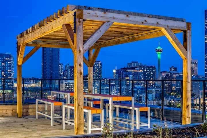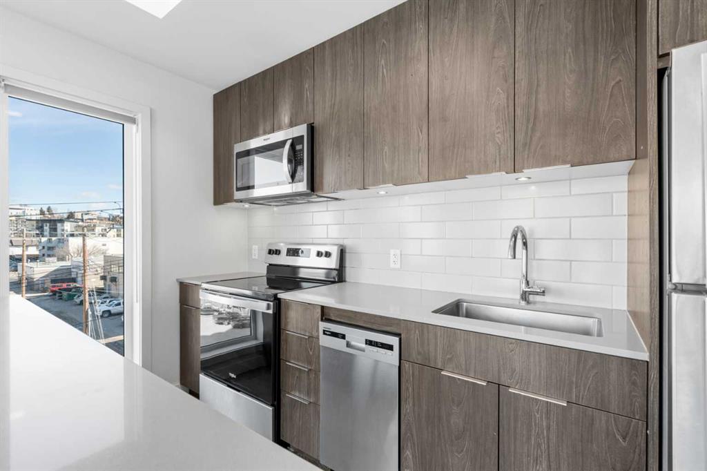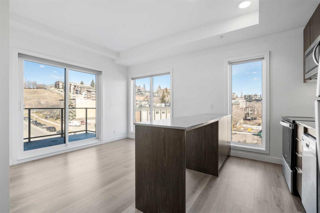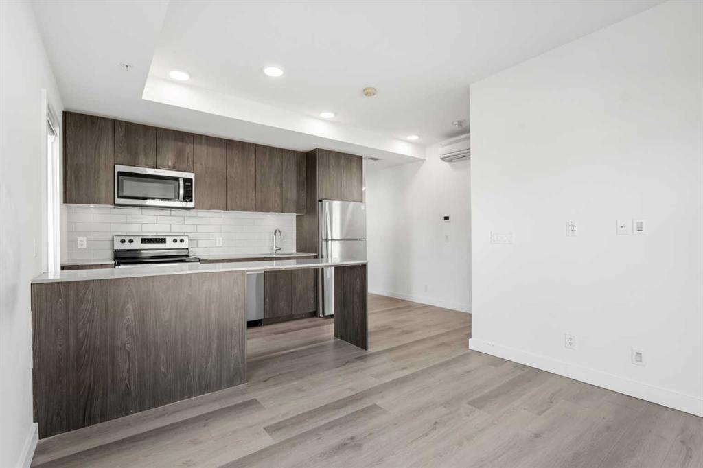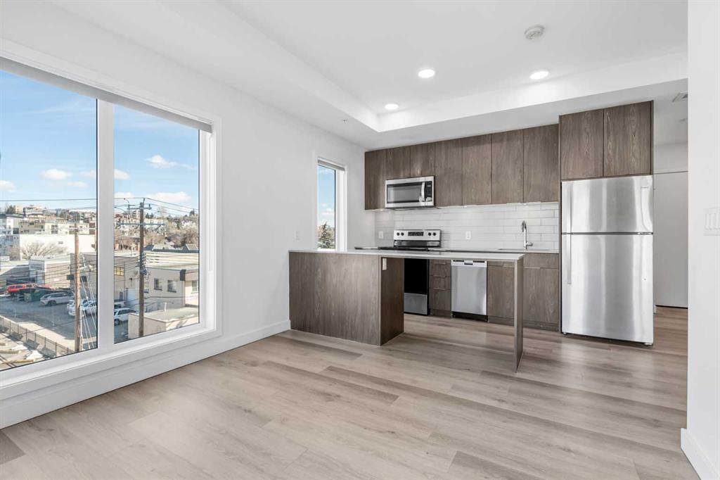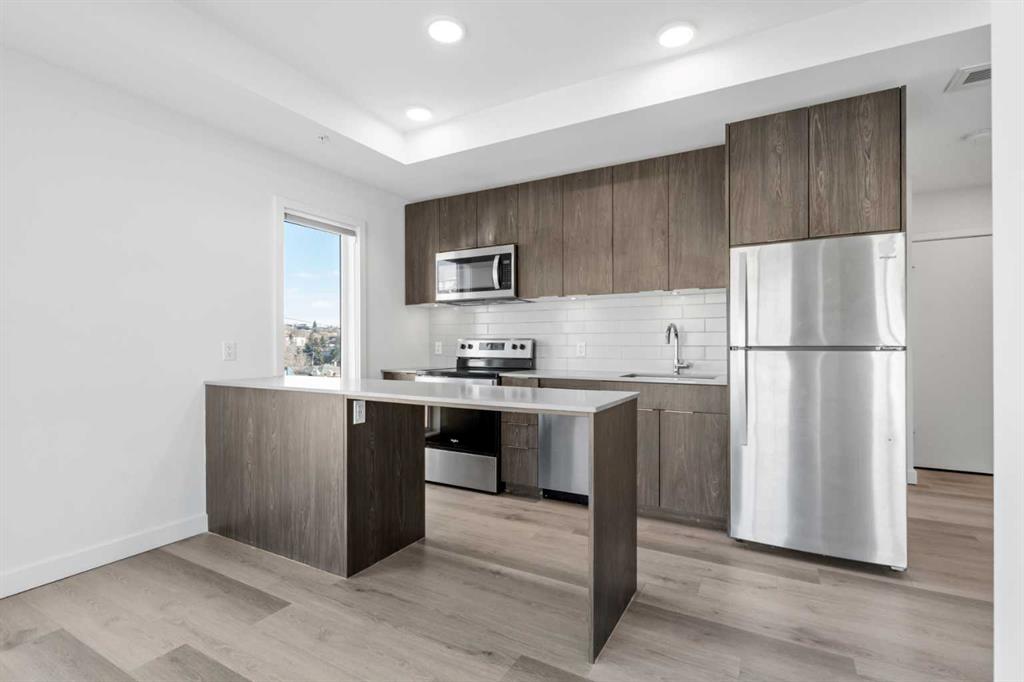 This stunning top-floor Northwest corner condo in the sought-after Era building offers 640 sq. ft. of stylish living with 2 bedrooms, 2 bathrooms, and sweeping downtown views. Flooded with afternoon light, it’s an ideal space for contemporary urban living in the heart of Bridgeland. The bright, open layout seamlessly connects the kitchen, dining, and living areas, creating a space that’s perfect for entertaining or enjoying a cozy night in. Large windows frame the skyline and fill the home with natural light, enhancing its airy feel. The kitchen blends style and function with sleek quartz countertops, stainless steel appliances, ample cabinetry, and a versatile island that provides extra prep space and casual seating. Whether you’re hosting or grabbing a quick bite, this kitchen delivers. Both bedrooms are generously sized for comfort and flexibility. The primary retreat features a private ensuite with modern fixtures, while the second bedroom can serve as a guest room, home office, or additional living space. The second full bathroom is equally well appointed with contemporary finishes and quality details. Residents of Era enjoy premium amenities including a rooftop terrace with skyline views, secure underground parking, and a pet-friendly environment. Located in the vibrant community of Crescent Heights, adjacent to Bridgeland, this home offers unmatched walkability. Step outside to find trendy cafés, acclaimed restaurants, boutique shops, and the Bow River pathway system. Downtown Calgary is just minutes away, making this location as convenient as it is exciting. Whether you’re looking for a sun-filled urban home or a smart investment in one of Calgary’s most desirable neighbourhoods, this condo offers the perfect balance of comfort, design, and location. Don’t miss your chance to make it yours.