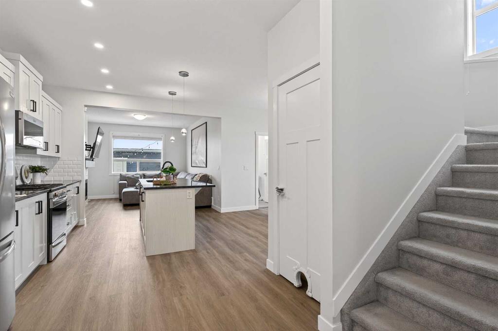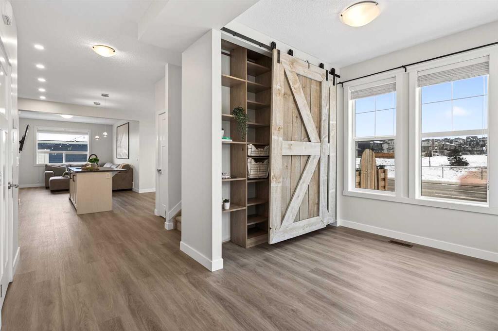 Outside, the sunny south-facing rear yard is a low-maintenance oasis with artificial turf, a deck, and a firepit—all enclosed by a beautiful fence. Situated on a prominent corner lot across from the quiet side of the Northcott Prairie School (K-8) yard, you are just steps from tennis courts, basketball courts, an off-leash dog park, and easy access to Highway 2. With a double garage and an abundance of street parking, this is the complete package. Don’t miss your chance to own one of South Airdrie’s most unique homes!