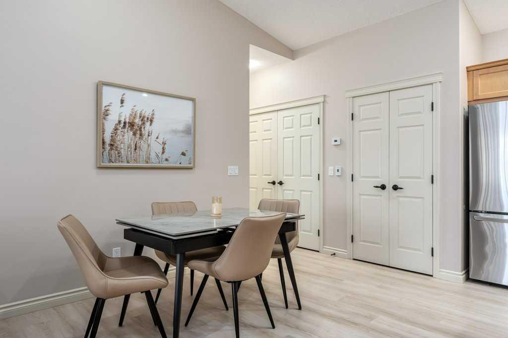 This two-bedroom condo is in excellent condition and tastefully decorated. It is a corner unit and has many features including in-floor heat, two bathrooms and a sunny south facing patio. The kitchen has plenty of cupboards and counter space, great looking black & stainless appliances, and a large pantry. There is a vaulted ceiling to give the home a spacious and open feeling, a convenient laundry area with lots of shelves, built-in speakers, and one of the bathrooms has a large walk-in shower with new glass doors. The double attached garage is clean and freshly painted with a finished floor that is easy to clean and appealing. Upgrades in this home include, fresh paint through-out the home and garage, a new all glass storm door, new flooring in the garage, new fridge, stove, washing maching, window coverings, and an excellent closet organizer in the primary bedroom. Condo fees include heating, water & sewer, garbage, landscaping & snow removal, and all exterior maintenance. Please click the multimedia tab for an interactive virtual 3D tour and floor plans.