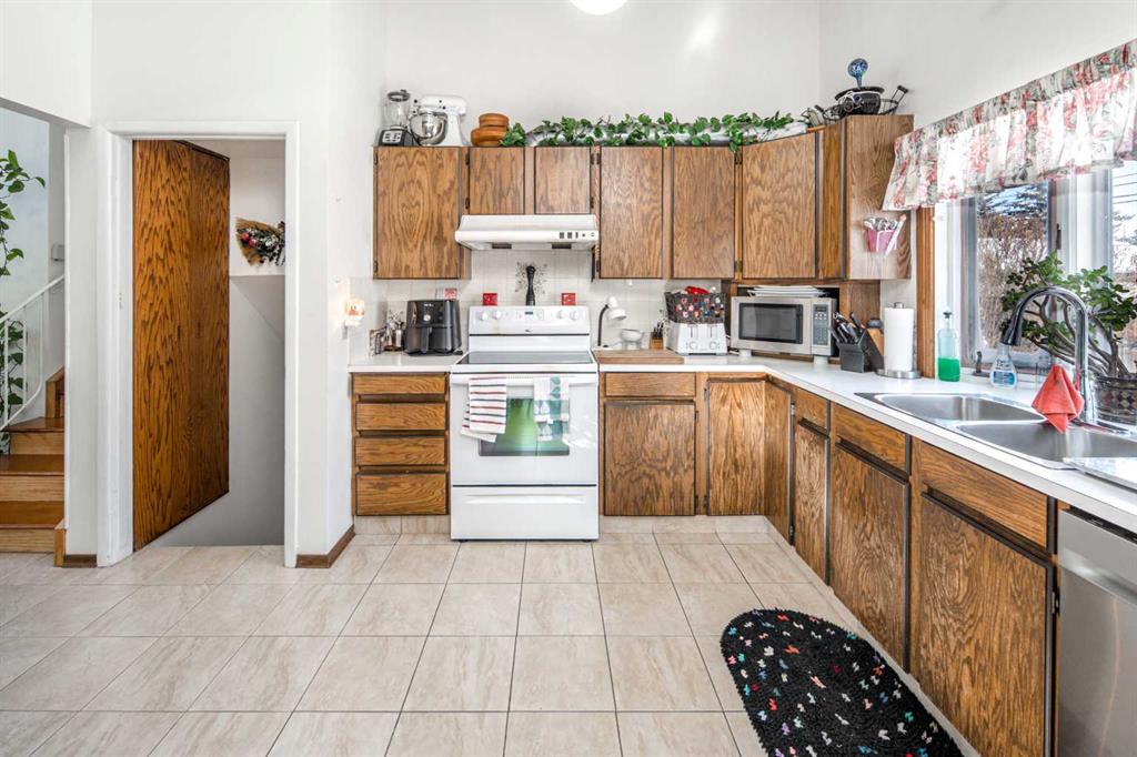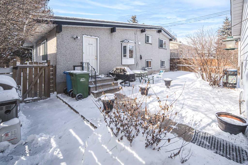 Immaculate fully finished 4-level split located directly across from a park and school in a highly convenient and family-friendly neighborhood. This well-maintained home offers 3+1 bedrooms and 2.5 bathrooms, making it ideal for families or as an investment property. The bright and open main level features gleaming hardwood floors, a spacious living room with soaring vaulted ceilings, and a formal dining area perfect for entertaining. The large kitchen includes newer tile flooring and updated appliances, providing both functionality and ample workspace. The upper level offers three generously sized bedrooms, including a primary bedroom with a private 2-piece ensuite, along with a renovated 4-piece main bathroom. The third level features a spacious family room filled with natural light from large windows, complete with a cozy wood-burning fireplace and an additional 4-piece bathroom. The fully finished lower level includes a fourth bedroom, cold/storage room, and laundry area, providing extra living space and storage. Oversized double garage fit big truck. Recent updates cost around $60K include: Dish Washer (2023), Garage door spring and rail (2024), newer roof on the oversized double garage (2014), interior paint (2014), entrance doors (2014), side fence and gates (2014), and a durable metal roof on the main house. Located within walking distance to the University of Calgary, transit, C-Train, and Market Mall, and just minutes from two major hospitals, Bowmont Park, and downtown. A fantastic opportunity in a prime location.