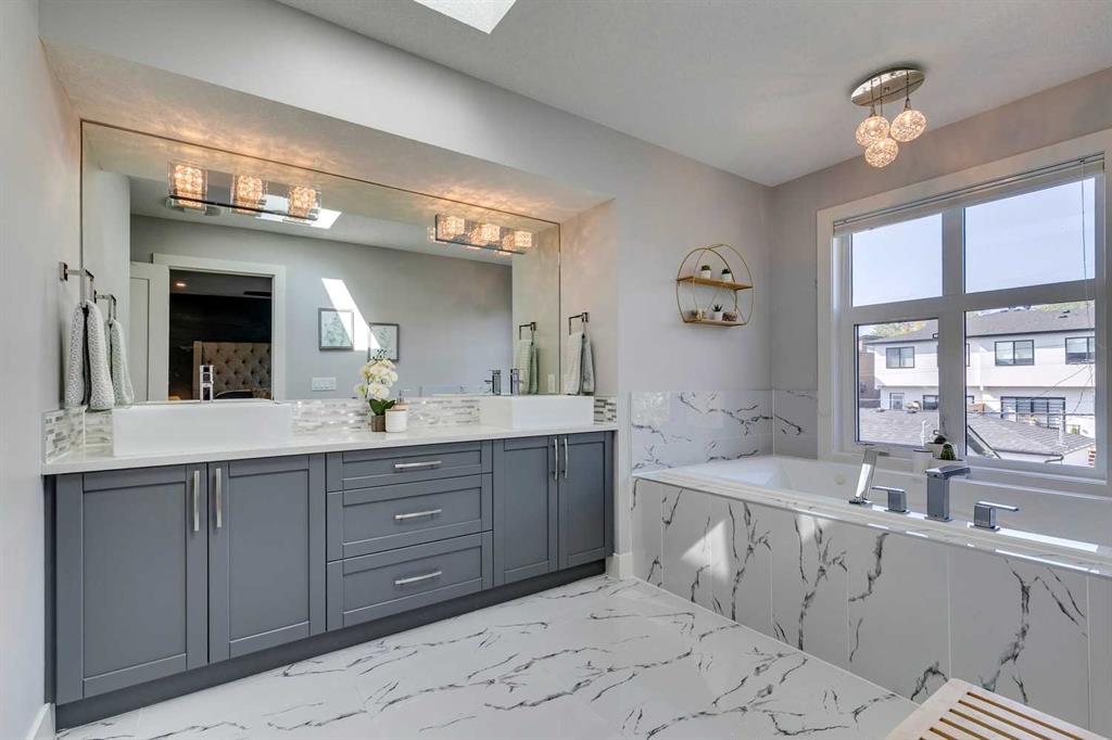 Welcome to the best value in the inner city. This modern 2-storey semi-detached home in Highland Park offers 2,700+ sq ft of well-designed living space, priced under $800,000. The main floor features an open-concept layout with high ceilings, a large kitchen island, built-in appliances, and a living area with a gas fireplace and custom wood built-ins. Large west-facing windows bring in natural light, complemented by a mudroom and 2-piece bathroom. Upstairs includes three bedrooms, a full laundry area, a 4-piece main bathroom, and a generous primary suite with a walk-in closet and 5-piece ensuite with double vanity, soaker tub, and separate shower. The finished basement has a rec room, huge wet bar, additional bedroom, and 4-piece bathroom, ideal for guests or family. The west-facing backyard is landscaped with raised flower boxes, a deck, and a detached double garage off a paved lane. Located in a prime inner-city area, this move-in-ready home combines function and style. Schedule a viewing today.