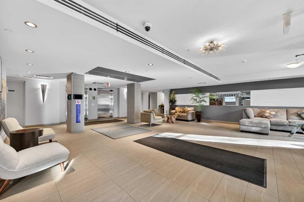 Residents of The Groves of Varsity enjoy access to premium building amenities including a fully equipped fitness center, steam room, fully equipped social room, and a rooftop terrace with BBQ area offering impressive views. With nearby shopping, dining, transit, U of C, and green space just steps away, this location supports both an active and connected lifestyle.