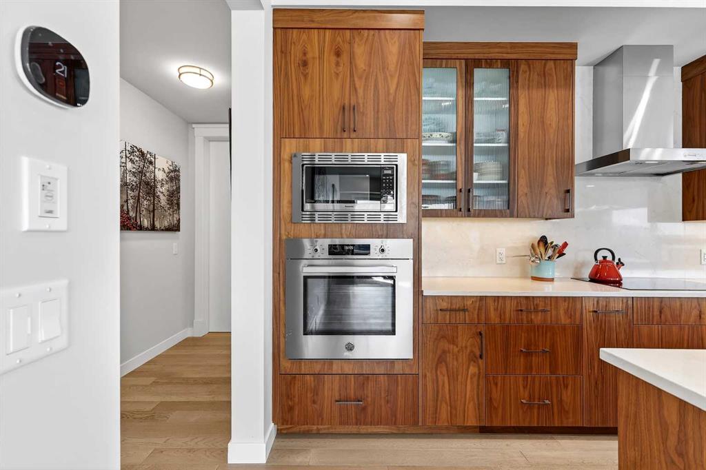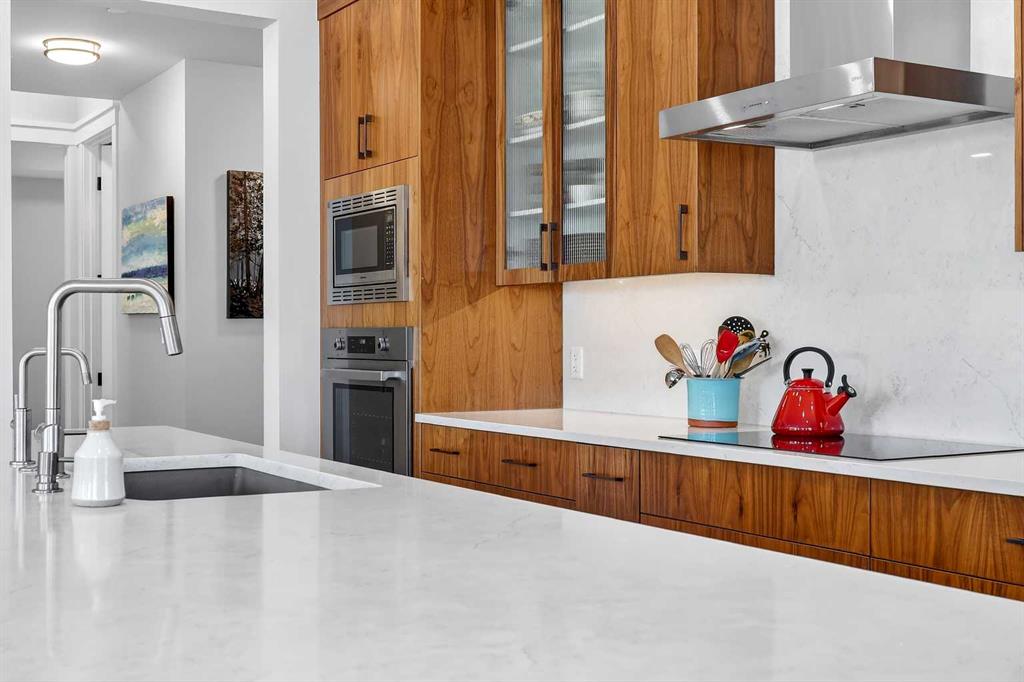 LUXURY PENTHOUSE LIVING WITH UNRIVALED INNER CITY LIVING IN UNIVERSITY DISTRICT – 21 LEBEL CRESCENT NW. Indulge in the pinnacle of upscale living in this exceptional penthouse condo in the prestigious Cabella development—located in Calgary’s premier NW lifestyle community. Offering a rare blend of expansive living space and refined elegance, this 1686+ sq ft residence is designed for those who value quality, privacy, and breathtaking surroundings. From the moment you step into the spacious foyer, you’re greeted by abundant natural light streaming through numerous large south-facing windows, creating a warm, welcoming atmosphere. Adjacent to the entrance, and adorned with a double closet, a private powder room, you’ll be swept into the heart of the condo, which features two distinct yet flowing living and dining areas, each anchored by a central island in the kitchen—ideal for entertaining or unwinding. An outdoor 12′ x 8′ covered balcony provides seasonal escapes, offering panoramic east/south views of University District, Nose Hill, the city skyline, and inner courtyard—an ever-changing natural masterpiece at your doorstep. Inside, the bespoke gourmet kitchen features white quartz countertops, upgraded cabinetry, and generous storage. In the private quarters, you’ll find a beautifully appointed in-suite laundry room with matching cabinetry and surfaces, blending utility with style. The first primary bedroom suite is a sanctuary, featuring a five-piece spa-style ensuite, a large custom walk-in closet, and oversized windows. Adjacent to this suite, a cozy second bedroom is an ideal space for reading, working, or hobbies. The third bedroom is equally luxurious, with generous proportions, large windows, and quick access to the third bathroom. This four-piece ensuite features a tiled soaker tub and a vanity with ample storage, providing convenience and comfort. This home also includes a private, attached double garage with additional storage space — a rare and valuable feature in condo living. Additionally, it’s conveniently located just a few steps from your elevator. Life at Capella is defined by lifestyle and community. Capella, developed by Brookfield Residential in Calgary’s University District, offers a “lock-and-leave” luxury lifestyle that blends high-end, maintenance-free living with immediate access to a vibrant, walkable urban environment. As part of a 200-acre master-planned community, Capella specifically appeals to a diverse demographic—including downsizers, professionals, and academics—seeking to balance comfort with convenience. Set against the backdrop of the University of Calgary, this extraordinary penthouse combines space, privacy, and refined living in an unbeatable location. Don’t miss your chance to experience luxury living at its finest—schedule your private tour today.