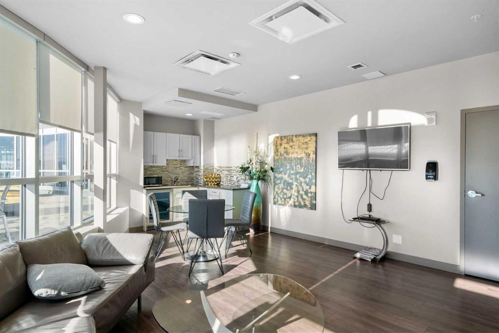 Nine-foot ceilings and individually controlled heat and air conditioning are welcome additions. Titled underground parking in a prime location and a separate storage area are also included. The building is made of steel and concrete, making the unit and common areas very quiet. There’s an on-site property manager during business hours who is accessible to all residents, and a BOMA-certified caretaker is also on-site to ensure everything is running smoothly. The condo community offers amazing rooftop amenities year-round! These include a well-equipped private gym, steam rooms, a meeting/party room, and a mountain-view terrace with BBQs. An on-site professional building includes a doctor’s office, pharmacy, coffee shop, and more.