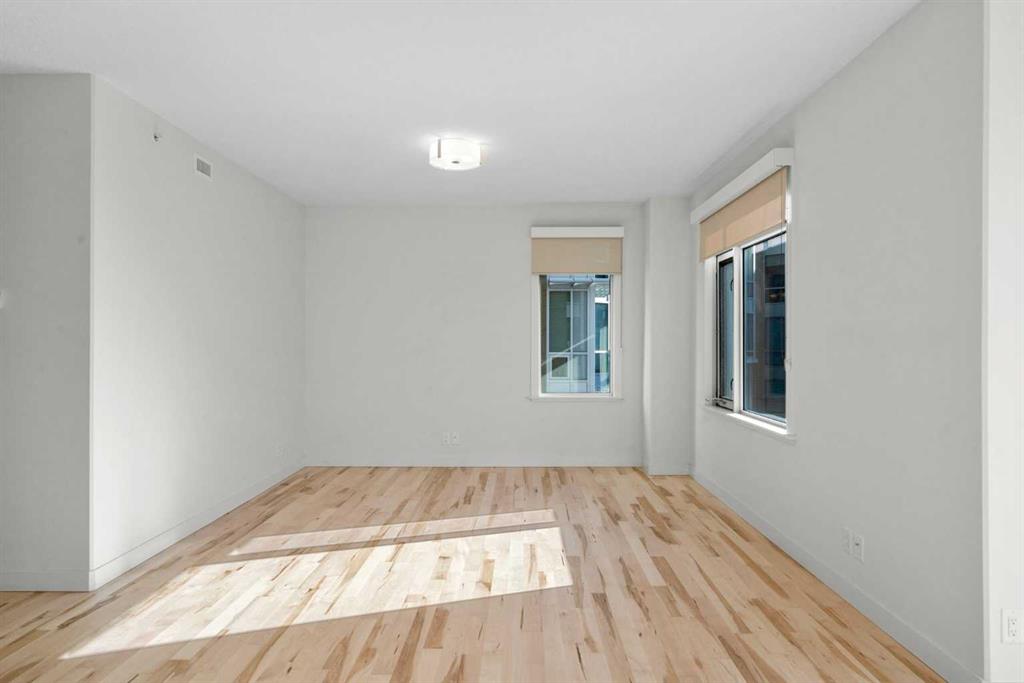 Walk into an open floor plan with newly finished hardwood and a well-appointed kitchen with raised bar seating and quality appliances. The primary bedroom boasts a huge walk-in closet and a luxurious ensuite with a shower and two sinks. The spacious second bedroom, complete with cork flooring, has a four-piece main bathroom that’s located on the opposite side of the living area, allowing for privacy while hosting guests. A separate laundry room includes an oversized washer and dryer. It has also been freshly painted, and the condo faces south, providing plenty of natural light.