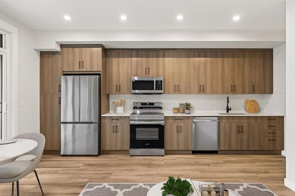 The kitchen is sleek and polished with stainless steel appliances, streamlined cabinetry, and a built in dishwasher that keeps everything looking seamless and functional. Luxury flooring flows throughout and leads to your spacious fourth floor balcony, an elevated spot for slow mornings, fresh air breaks, or relaxed evenings above the neighbourhood.