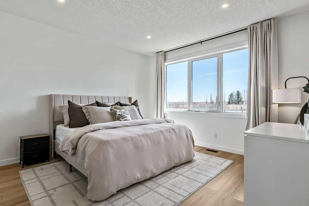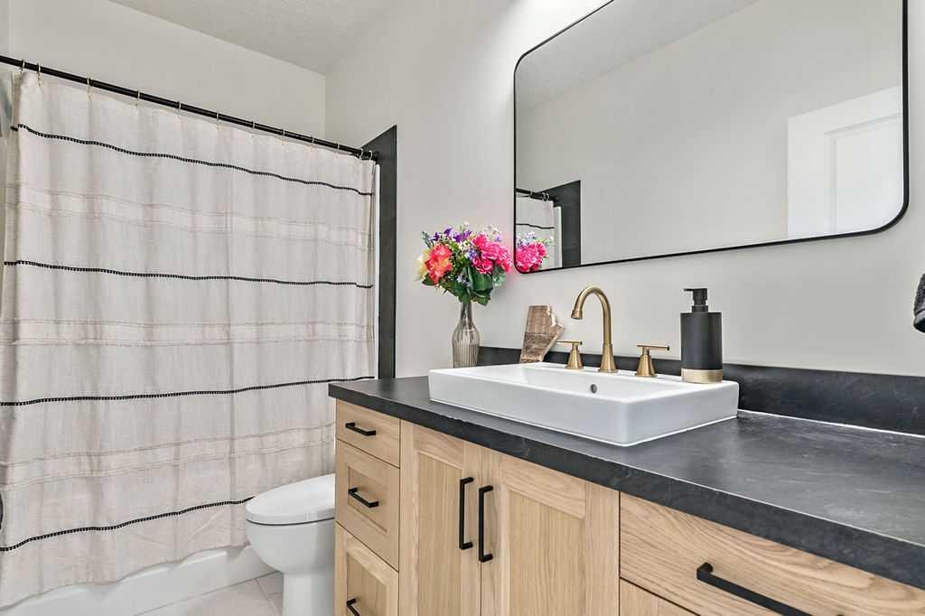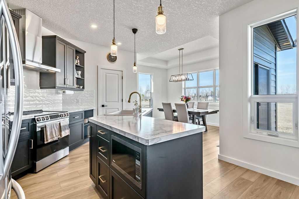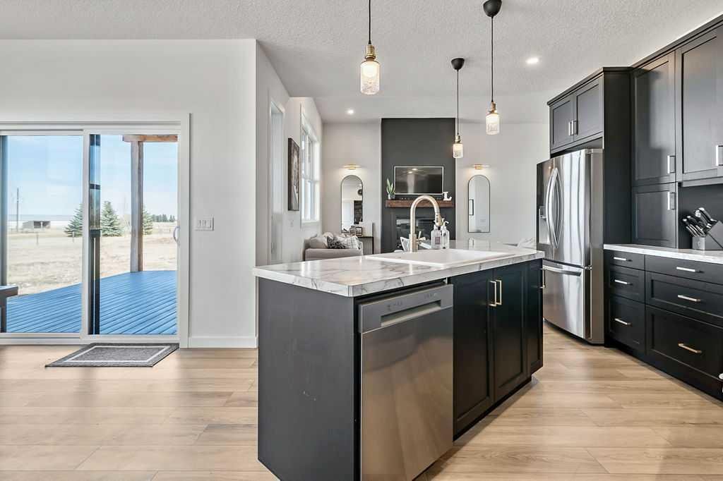 Welcome to your dream acreage in sought-after Foothills County—just 5 minutes southwest of High River—where breathtaking mountain views meet the peace of country living with the convenience of town amenities nearby. Situated on 2.42 acres, this stunning custom-built (2025) bungalow offers over 5 bedrooms, 3 full bathrooms, and a beautifully designed, fully finished layout. From the moment you arrive, the striking Hardie board and stone exterior, large covered front porch, and clean contemporary lines set the tone. Step inside to a bright, welcoming foyer featuring a custom built-in bench and hooks—perfect for everyday functionality. The open-concept main floor showcases gorgeous vinyl plank flooring and a seamless flow between the living, kitchen, and dining spaces. The living room impresses with 11’ ceilings, expansive north-facing windows, and a modern gas fireplace—creating a warm yet sophisticated gathering space. The chef-inspired kitchen is a showstopper, featuring sleek black cabinetry, white countertops and backsplash, and elegant gold accents, along with a large island (with sink and microwave), premium appliances, and a spacious walk-in pantry. The dining area comfortably accommodates large gatherings and is surrounded by west- and north-facing windows, with direct access to the expansive covered deck—private, sheltered, and ideal for year-round enjoyment. The primary retreat offers a peaceful escape with bright east-facing windows, a luxurious ensuite with double vanity, soaker tub, oversized walk-in shower, and an expansive walk-in closet conveniently connected. Thoughtful finishes of tile, wood, and stone elevate the space. The main level also includes a second bedroom (perfect as a home office or den), a full 4-piece bathroom, and a well-designed mudroom and laundry area with direct access to the oversized double garage. The fully finished lower level features three additional spacious bedrooms, a 4-piece bathroom, large windows for abundant natural light, and a versatile layout ideal for a recreation room, gym, home business, or media space. Ample storage completes the lower level. Outside, the property is ready for your vision—offering endless potential for landscaping, outbuildings, and outdoor living. This home perfectly blends modern design, clean lines, and a neutral palette of white, black, wood, and natural textures, creating a space that feels both elevated and inviting. A rare opportunity to own a newly built home in an unbeatable location—space, style, and lifestyle all in one.