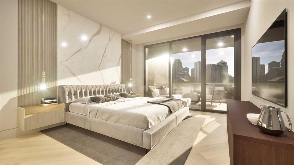 Only a few Broadview’s left in the entire project! Welcome to your dream single-level residence in the sky overlooking the river at The Kenten. Masterfully designed by architects Davignon and Martin, The Broadview is designed to give Calgarians an inner-city experience without sacrificing the comforts appreciated in an executive home. At 48 feet of unobstructed frontage, this could be described as having a city lot in the sky to build your custom home. As you step in, you are greeted by grand living space with floor to ceiling triple-pane windows; a 22 foot wide spacious open concept kitchen, living, and dining rooms designed to entertain your family and friends. Enjoy a gourmet kitchen with Sub-Zero & Wolf appliances including a dedicated fridge and freezer, a butler’s pantry, an abundance of storage, a bar, wine wall, and fireplace that all flow towards your opening wall system. Step out onto your 200 square foot terrace overlooking the beautiful Bow River. Enjoy a spacious primary bedroom with custom millwork, 3 closets including a walk-in closet, and 6 piece ensuite bathroom with a floating tub, heated floors, and double shower with steam. The second bedroom comes with a built-in murphy bed, with a built-in closet and room for a desk, along with an en-suite bathroom. An additional 2 piece bathroom and laundry room complete the residence accompanied by 2 bike racks, 2 titled storage lockers, and 2 titled parking stalls. There are 3 Modern palettes to customize your residence from. The Kenten features over 8,000 square feet of amenities including a sky lounge, gym overlooking Kensington, golf simulator, sauna, hot tub, concierge, guest suites, car wash, and more. Explore a simplified lock and leave lifestyle you didn’t know was possible, with 250+ shops and restaurants in Kensington and river pathways stemming from one end of the city to the other. With only a few residences remaining of 44 residences, don’t miss this once in a lifetime opportunity to live at the most interesting corner in Calgary.