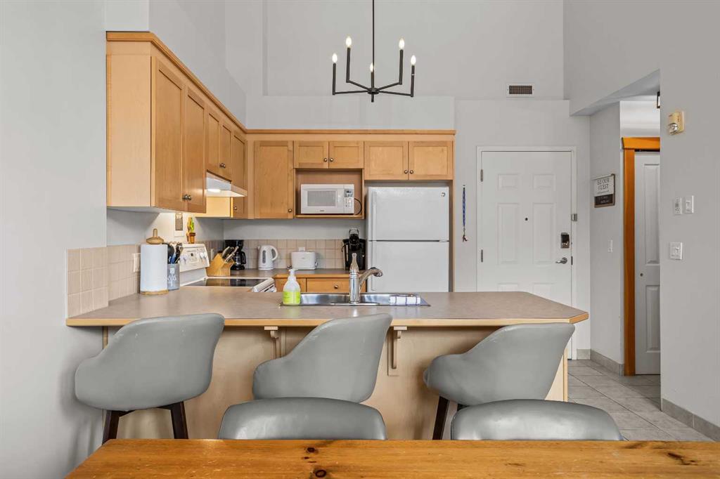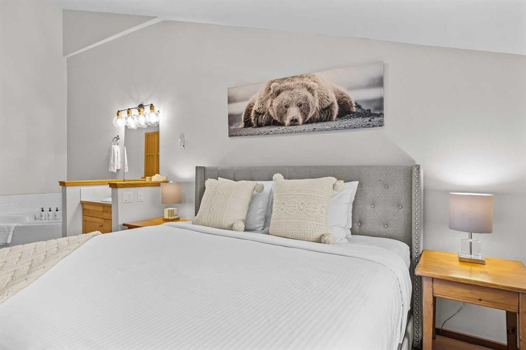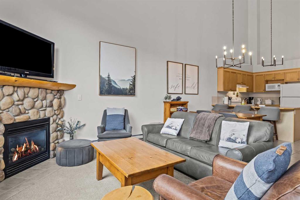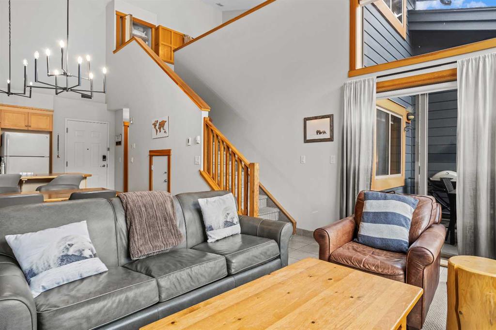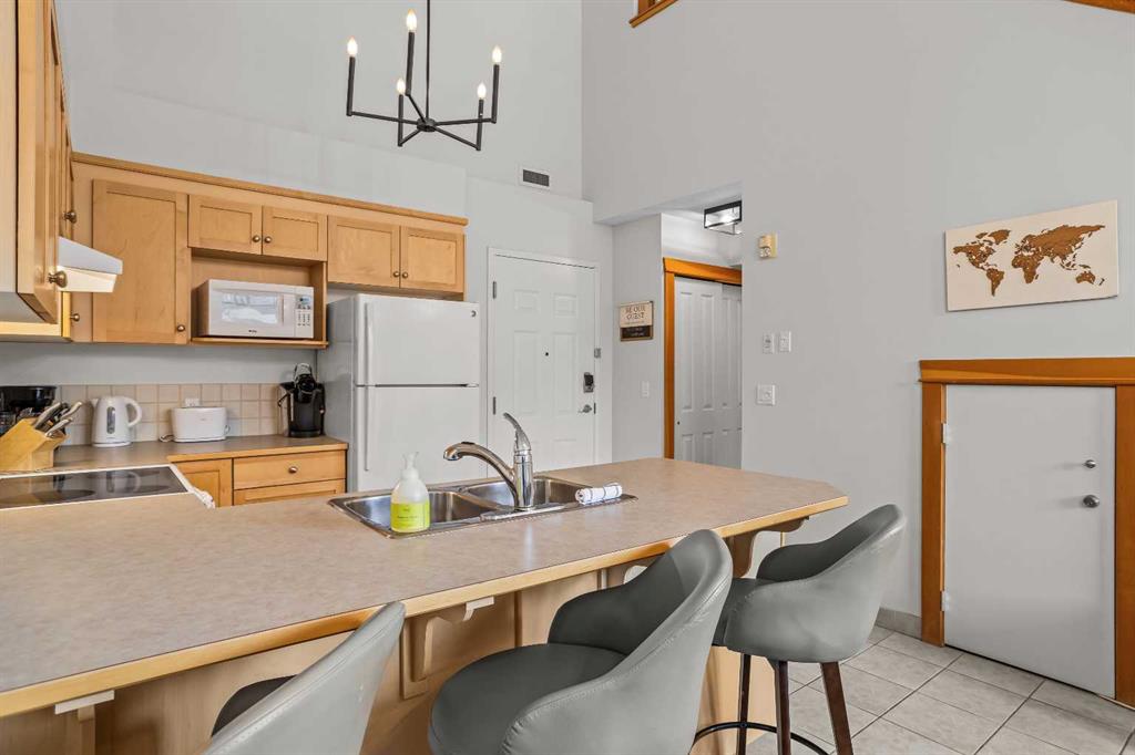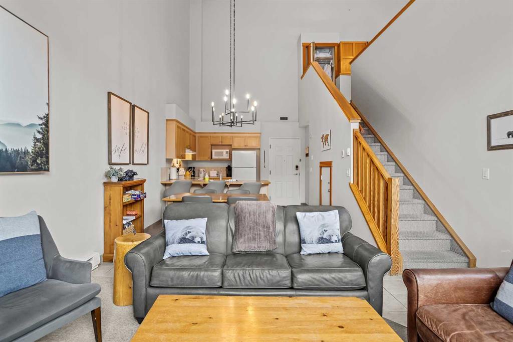 DOWNTOWN TOURIST HOME CONDO, HUGE VIEWS! Turn key opportunity with this beautiful 2 level, top floor condo zoned Tourist Home. You can choose to live there full time or to rent it nightly with fabulous returns. This condo is one of the top producing 2 bedroom rentals in the complex. 2 bedrooms, 2 baths, vaulted ceilings and gorgeous mountain views from every window. The kitchen comes complete with an eating bar and is open to the dining and living room areas. On the main floor you will also find a bedroom, 3 piece bath and laundry. The lofted master bedroom also has tremendous views and features a corner jetted tub. This complex boast 2 of the best hot tubs in town, located on the roof top. These shared amenity areas feature 360 panoramic breathtaking views. You’ll also find a full gym facility, tandem parking stall in underground secured parking plus storage. This condo is located in the center of Canmore, within walking access to all the amenities dining and shopping