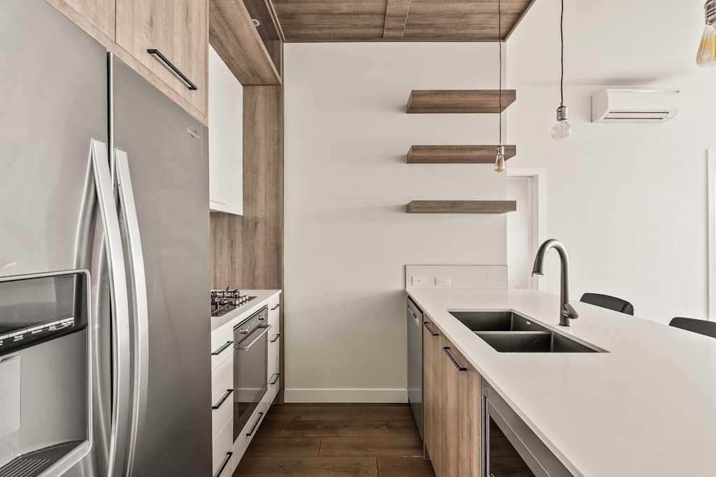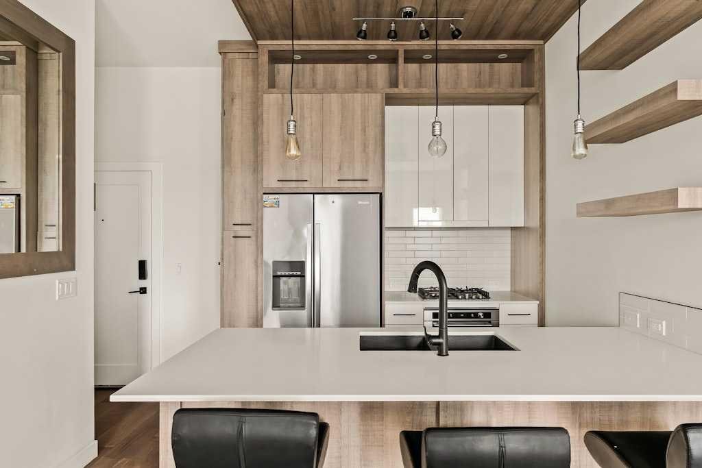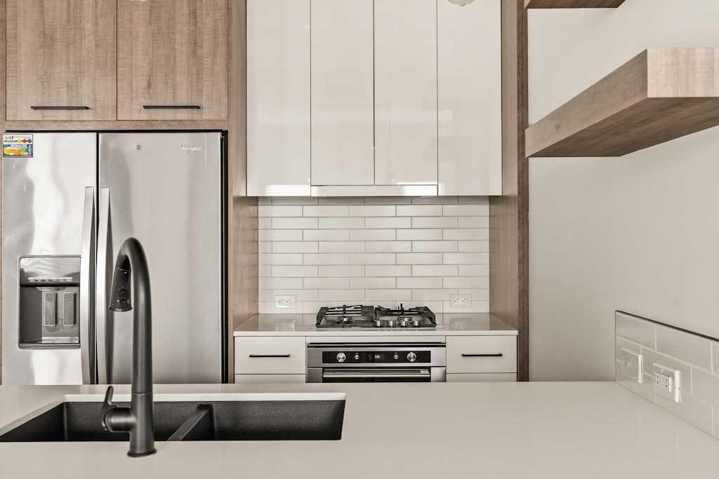 Perched on the top floor of 1741, this beautifully curated 2-bed, 2-bath residence blends contemporary sophistication with effortless urban living, offering a sunny south-facing balcony with a gas BBQ hook-up and a coveted position steps from Calgary’s favourite restaurants, boutique shopping, the LRT, Killarney Pool, Shaganappi Golf Course, local parks, and the library. Inside, illuminated in natural light and boasting all fresh paint, discover hand-scraped engineered hardwood floors that sets a warm, textural foundation for the opulent picture-frame kitchen-finished with high-gloss soft-close cabinetry, white subway tile backsplash stainless steel appliances including a gas cooktop and french-door fridge with filtered water/ice, Caesarstone counters, an under mount sink, under-cabinet LED lighting, and modern industrial-inspired fixtures glowing with vintage Edison bulbs. Thoughtful finishes elevate the everyday: A/C, a custom pantry, added shelving over the built-in desk nook, a newer dishwasher (1.5 years), garburator, matte-black hardware throughout, and seamless in-suite laundry. The spacious layout offers plenty of space to entertain, and offers excellent separation between the bedrooms, making it ideal for couples, professionals, or shared living, while underground titled parking and an assigned storage unit provide year-round convenience. Perfectly balancing high design and high function, you’ll find every element of refined inner-city living in one exceptional property. **OPEN HOUSE: Saturday, November 15th from 1:00 – 3:00pm**