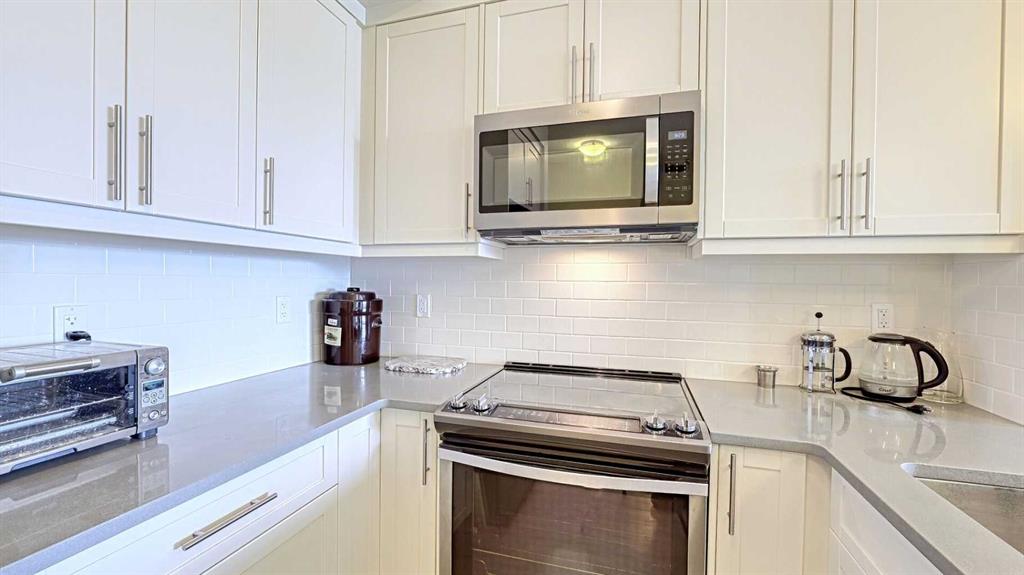 This lovely one bedroom – one bathroom home has everything you need. As you enter the unit, there is a coat closet and washer and dryer to your right. The kitchen to your left with quartz counters and stainless-steel appliances, opens to the dining/living area and has a breakfast bar too. Whilst enjoying the light from the large windows the unit has air conditioning for your comfort. The Bedroom has a walk- thru closet to give direct access to the 3-piece bathroom. Relax on your west-facing deck overlooking the green space below and with a gorgeous view of the mountains. Dinner is not an issue, as there is a gas hookup for your barbeque! To top everything off, there is an Underground parking stall and a storage cage in a secure area. Plus, the building has a bocce ball court and a common patio area that can be booked for your private use.