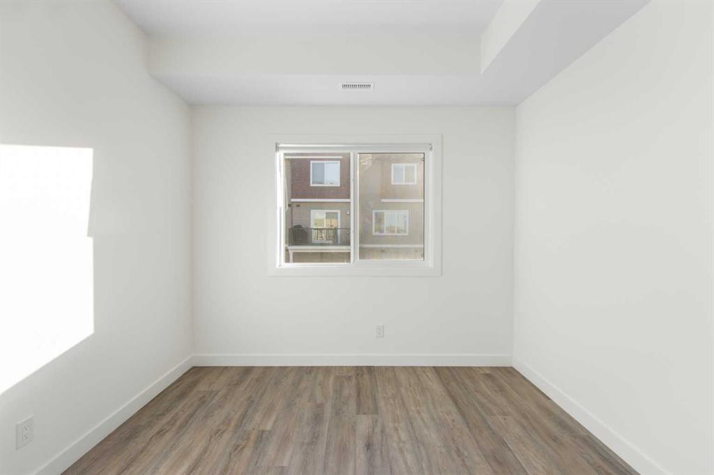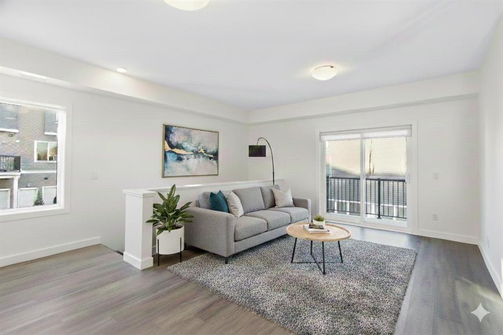 2 Bedroom 2 Bath END unit townhouse with a garage that offers the perfect blend of style and function, with most of the layout conveniently situated on a single level. Step inside and up 1 flight of stairs to the main floor and you will discover an open-concept living area with and a fully equipped kitchen boasting quartz countertops, soft-close drawers, and stylish two-tone cabinets highlighted by pendant lighting. An adjacent, flexible space is perfect for a spacious dining area or a home office. This home has two large bedrooms and two full bathrooms. The primary bedroom features a massive walk-in closet and a 4-piece ensuite. A spacious laundry room adds to the convenience. This unique floor plan is designed to feel like a modern apartment but with the added benefits of a main floor storage/flex area and direct access to an oversized, extended single-car garage.This home is perfectly situated to offer the best of both convenience and community. It’s located right next to a future school site, with transit options directly at your doorstep for effortless commuting. Enjoy a short two-minute walk to Bow Valley High School, and a quick five-minute trip to the Spray Lakes Sports Centre for all your recreational needs. For bigger city amenities, you’re only 20 minutes from South Calgary, and the mountains are within easy reach, with Canmore just a 40-minute drive away.