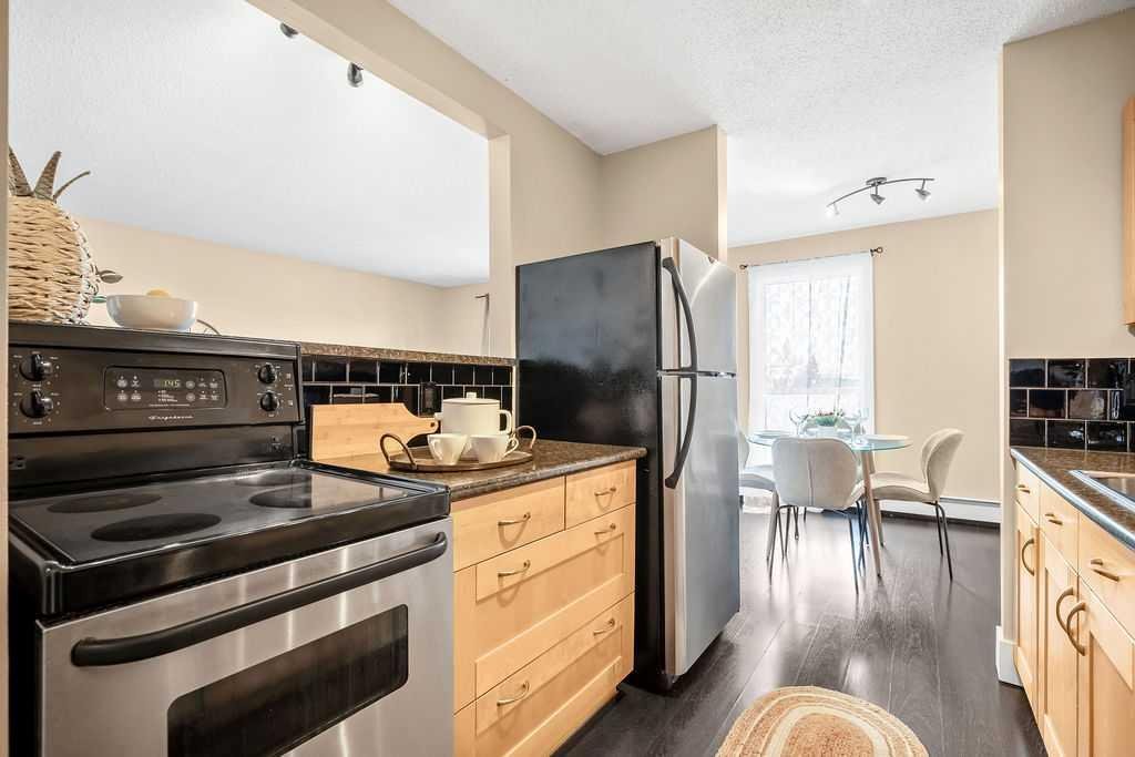 Located on the fourth floor, this unit enjoys added privacy and quiet, with no neighbours above you. The open-concept kitchen, dining, and living area creates an inviting space for both everyday living and entertaining. The kitchen features sleek stainless steel appliances, a stylish black backsplash, laminate countertops, and a full pantry for generous storage. The open layout flows seamlessly into the dining area and spacious living room, creating the perfect setting for hosting friends or cozy nights in.