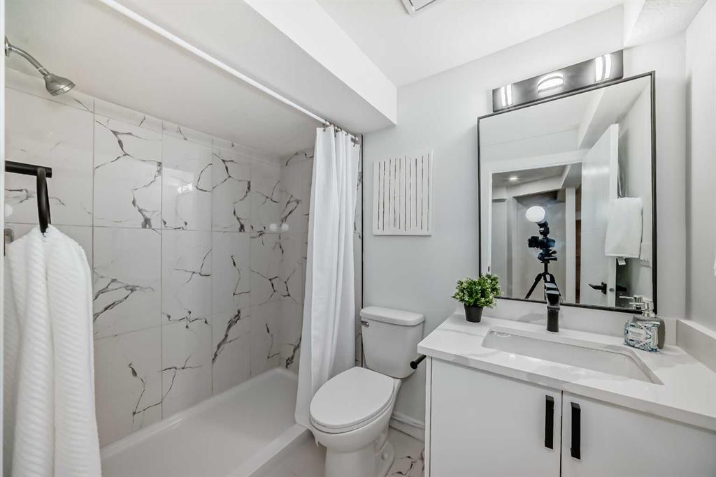 Are you looking for the perfect starter home or investment property? This is it! Seriously! Come and be amazed at this just renovated 4 bedroom and 2 full bathroom town house with almost1,500.sqft of developed space in the very desirable and central community of Thorncliffe. This townhouse is located in a very well managed complex. With very quick access to Deerfoot and hence everywhere in the city, there no better location. Super close to shopping, Thorncliffe community YMCA where you find swimming, fitness center, lawn tennis, library, also walking distance to all levels of schools (elementary to high school). Get captivated by the spacious and open floor plan, brimming with abundant natural light that pours in from the very big windows, perfect for entertaining and family life. Picture yourself entertaining guests or indulging in family time in this spacious and bright living room perfected with the fireplace providing a cozy atmosphere. To the right is the kitchen complete with brand new stainless-steel appliances and quartz counter tops with a dining area. Upstairs you have a spacious primary bedroom, 2 other good-sized bedrooms and a 4 piece bathroom. Downstairs in the basement is the fully developed space that provides you with a family room for family game or movie nights or a play area for the little ones, a separate study/office space, an additional bedroom and a full 3-piece bathroom. Priced to sell. This will Not last. Call your favorite Realtor today.
