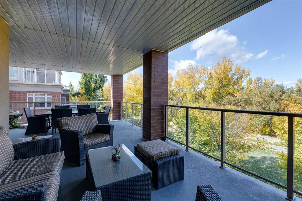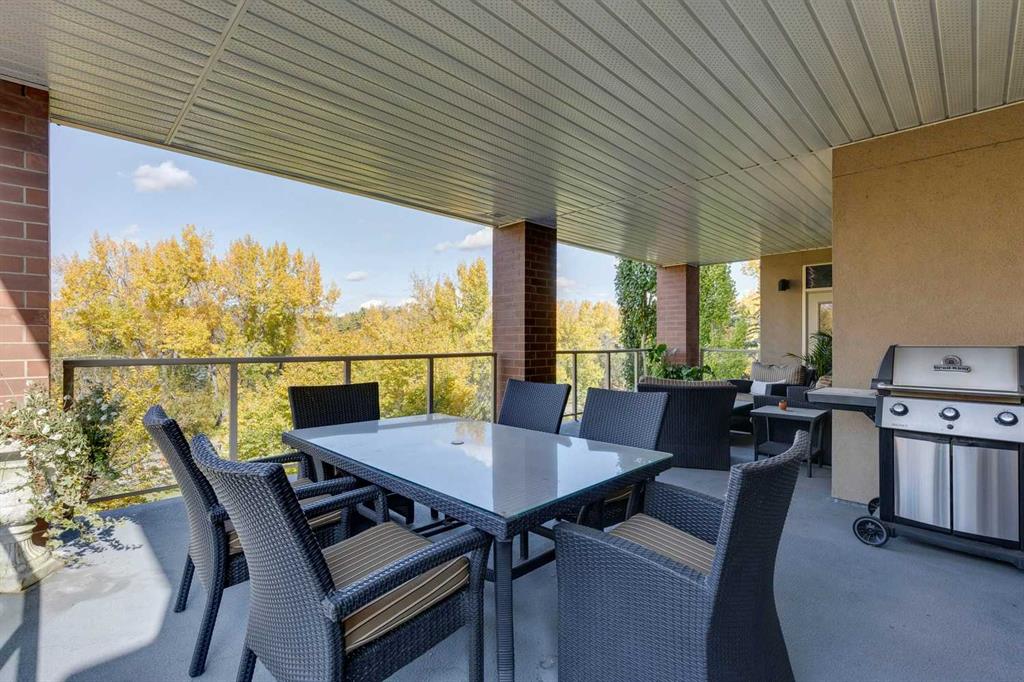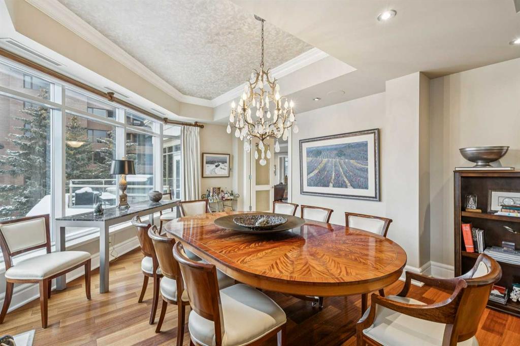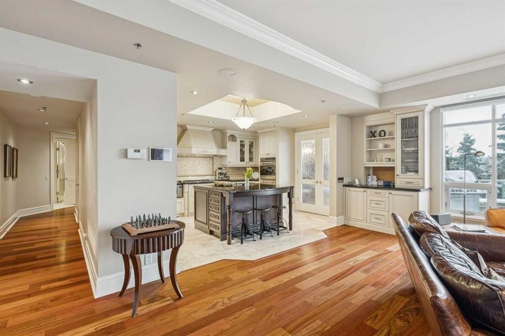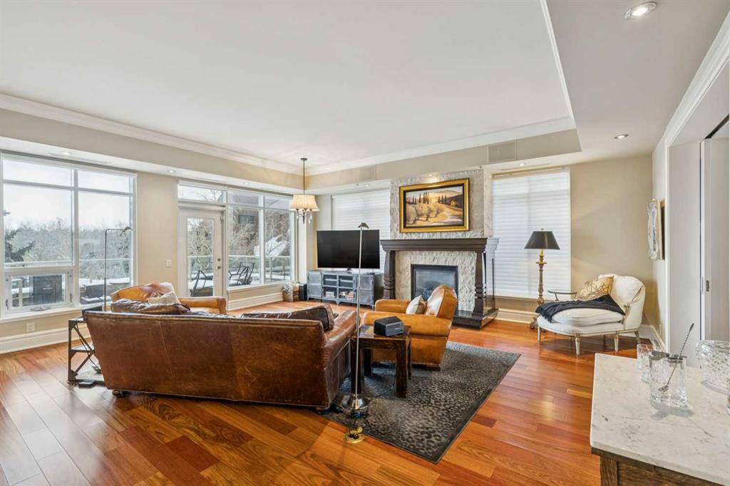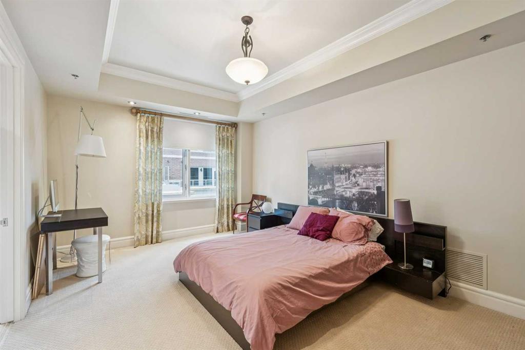 Welcome to Princeton Grande, one of Calgary’s most prestigious & exclusive riverfront addresses in the heart of Eau Claire, perfectly positioned along the Bow River & directly across from the natural beauty of Prince’s Island Park. This extraordinary 3,065 sq. ft. private sub-penthouse offers an exceptional standard of luxury living, where timeless elegance, architectural scale & breathtaking river & park views come together to create a truly remarkable home. A private elevator opens directly into the residence, revealing expansive interiors designed for sophisticated entertaining & refined everyday living. Grand principal rooms are framed by oversized windows that capture sweeping views of the river & park, while high coffered ceilings, custom millwork, & elegant designer finishes elevate every space. The stunning formal living room, anchored by a double-sided gas fireplace & surrounded by windows, creates a dramatic yet inviting setting while the gracious dining room is perfectly suited for hosting memorable dinners & special occasions against a backdrop of spectacular views. The chef-inspired kitchen is beautifully appointed with granite countertops, custom cabinetry, & an expansive pantry, offering both functionality & understated luxury. Flowing effortlessly into a bright south-facing breakfast nook & a comfortable family room, with access to a private terrace ideal for outdoor dining & enjoying river views. A refined den with custom built-ins provides the perfect executive office or private library (could be used as a 3rd bedroom). The luxurious primary suite is a tranquil sanctuary featuring a spacious walk-in closet, private balcony, & a spa-inspired ensuite complete with a deep soaker tub, glass-enclosed shower, and dual vanities. A second bedroom with its own ensuite & large closet offers exceptional comfort & privacy for guests. Additional highlights include 371+ sq. ft of outdoor living space on two balconies, a dedicated laundry room, central vacuum system, built-in speaker system, abundant in-suite storage, two titled underground parking stalls a short distance to the elevator, & a titled storage locker. Residents of Princeton Grande enjoy an unmatched collection of five-star amenities designed for comfort, wellness, & entertaining. These include 24-hour concierge & security, an elegant lobby with fireplace lounge, beautifully appointed guest suites, a private library & conference room, temperature-controlled wine storage with a tasting room, a sophisticated residents’ lounge with full kitchen & terrace, fully equipped fitness center, a dedicated yoga studio, steam room with change facilities, an underground car wash bay, & a private freight elevator for discreet service & move-ins. Surrounded by the Bow River pathways, steps to downtown’s finest dining, cultural venues, & vibrant urban amenities, this exceptional residence offers a rare opportunity to experience luxury condominium living at one of Calgary’s most distinguished & sought-after addresses.