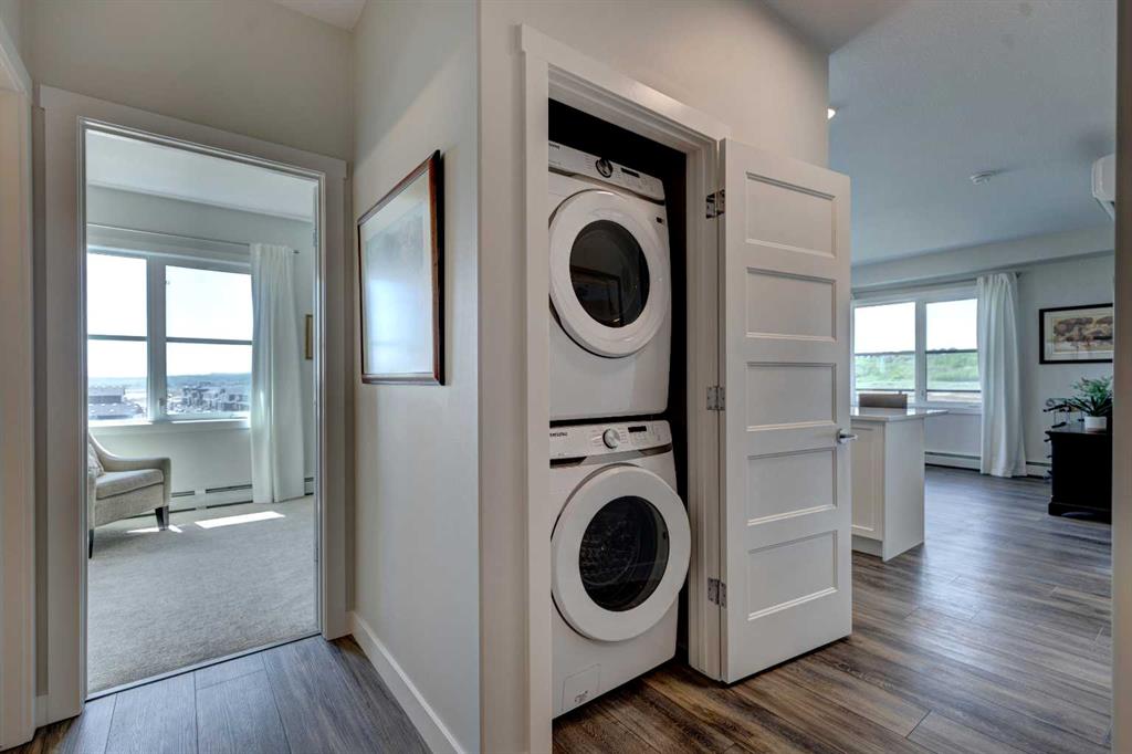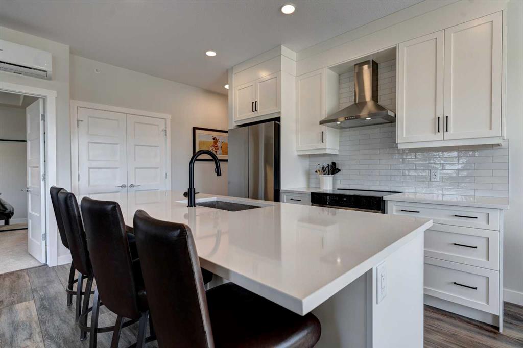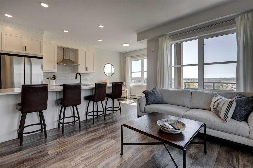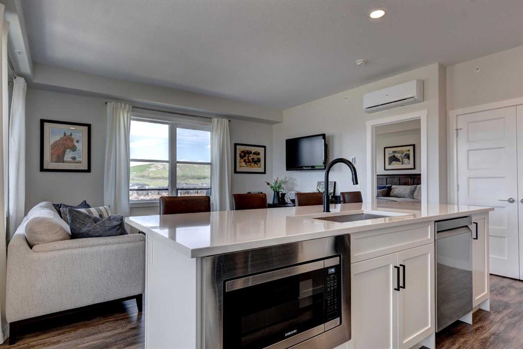 Incredible Value Here! Motivated sellers. New Price below assessed value. Welcome to Bow360 built by luxury condo developer Cove Properties. This stunning , thoughtfully upgraded top floor corner unit offers the ultimate blend of style, comfort and convenience. Featuring 2 spacious bedrooms and 2 beautifully appointed bathrooms this home is designed for everyday living and exceptional entertaining. Step into a chef inspired kitchen with a sleek 9ft quartz island, designer backsplash, full height soft close cabinetry and upgraded appliances. The open-concept layout flows seamlessly into the bright and airy living space (new designer blinds to be installed October 28). The expansive wrap around balcony offers panoramic views perfect for morning coffee sunrises or evening sunsets. Enjoy the comfort of air conditioning, ease of in-suite laundry and the practicality of titled underground parking and 2 storage units. Nestled in the sought after community of Wolf Willow where you are surrounded by nature. Steps from the walking/biking paths along the Bow River and Fish Creek Park. And your four legged family members will be right at home in this pet friendly building. Don’t miss out – book your showing today!