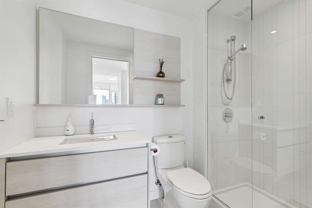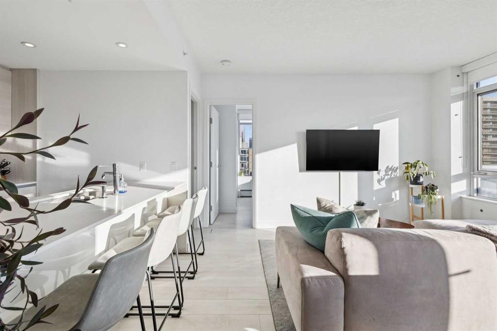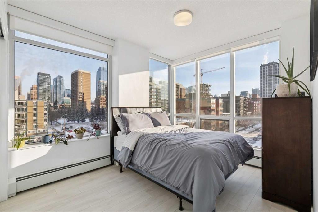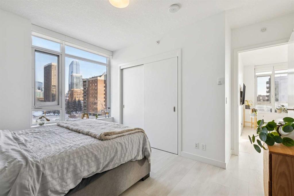 The Smith building is in THE BEST Beltline location. Unit 405 is a large 2 bed + 2 full bath CORNER UNIT at the front of the building, with titled parking and a rare/amazing titled storage locker. Designed for entertaining + comfortable living, the floor plan is anchored by a galley kitchen with custom cabinetry, quartz counters, gas cook-top + wall oven, microwave, plenty of storage, and breakfast bar. This over looks formal living/dining spaces which are flooded by natural light and enjoy access to the fabulous patio with park + downtown views + an inner city vibe. The primary bedroom has plenty of closet space w/ organizers, and an ensuite bath w/ HEATED FLOORS, soaker tub, rain head shower fixture, and high end plumbing. The second good sized bedroom has incredible views, a big closet, and direct access to a modern 3-piece bath. Don’t miss the CONCIERGE, IN-SUITE LAUNDRY, bike storage, and easy walkability to restaurants, groceries, parks + downtown.