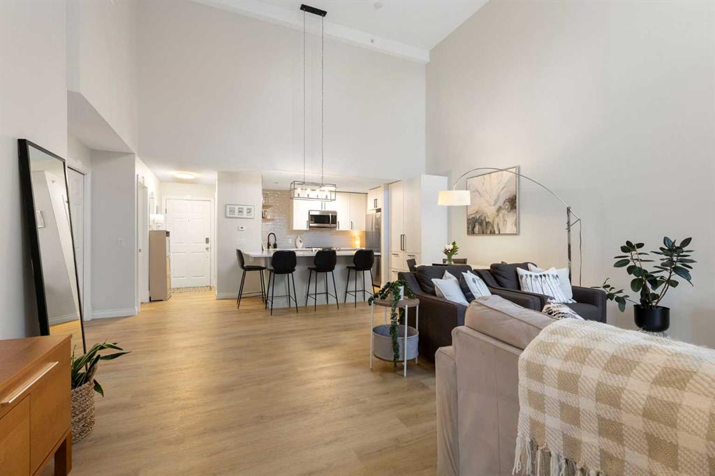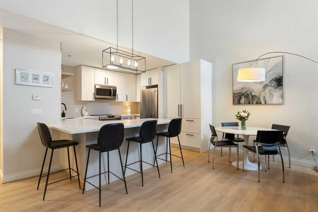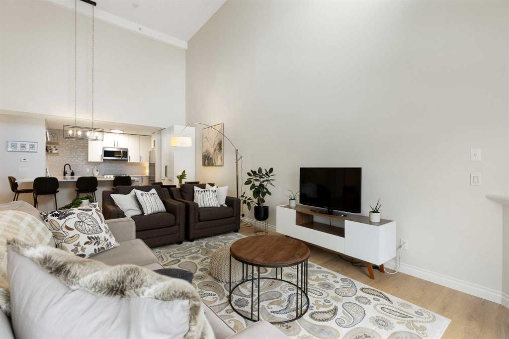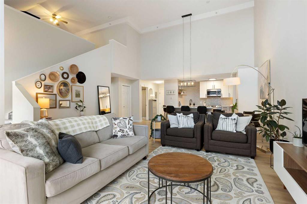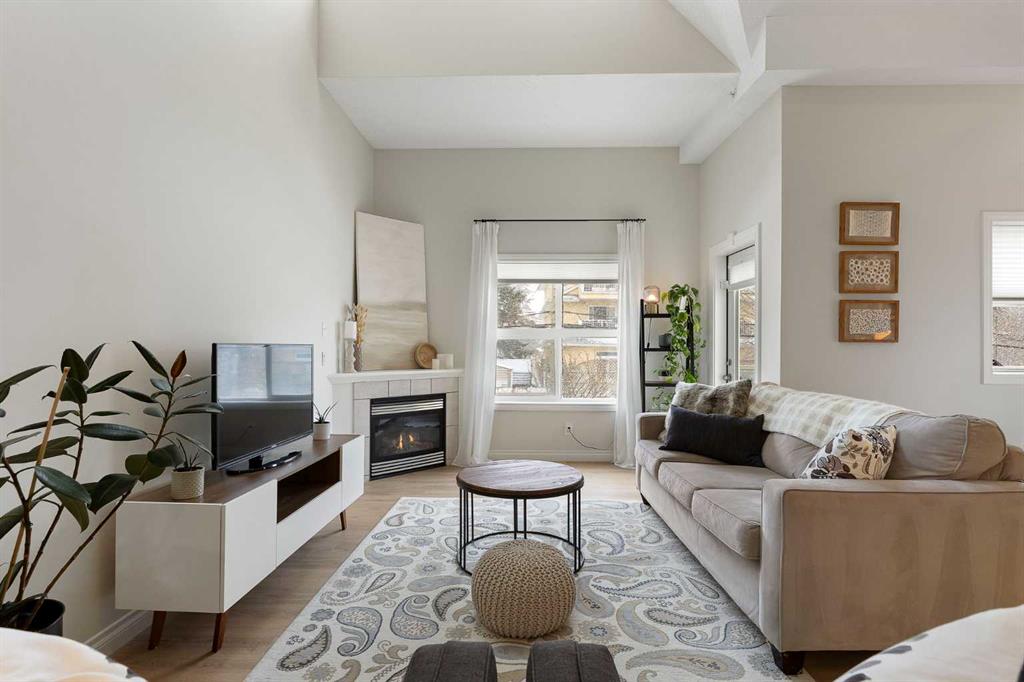 You will find exceptional value in this extensively renovated, 1 bedroom + loft, 2 bathroom condo in South Calgary! Featuring 1,214 sqft of space, this spacious top floor condo is full of high quality renovations and upgrades. As soon as you enter the front door, you will immediately notice the 17-foot ceilings, big windows offering plenty of natural sunlight, and vinyl plank flooring throughout the entire main floor. Next, you will find a beautifully renovated kitchen featuring new cabinets, quartz countertops, large pantry, upgraded stainless steel appliances, and a peninsula island. With a dining room and living room adjacent to the kitchen, this functional, open concept floor plan makes it easy to entertain family and friends! The living room also features a gas fireplace. The large primary bedroom has plenty of natural light with a sliding door leading to your balcony, a walk through closet, and a 4-piece ensuite with soaker tub and shower. Finishing off the main level is an additional 4-piece bathroom, in-suite laundry with new washer & dryer (Dec 2025), and a storage room under the stairs – an extra feature that most units in this complex do not have! Heading up the stairs, you will find a generous sized loft that is perfect for an additional sleeping area, office, or entertainment room. Lastly, this unit features a 20-foot balcony with south exposure, perfect for enjoying many nice summer evenings or relaxing after work. This unit also comes with an underground, titled parking stall and an assigned storage locker. Finally enjoy everything that South Calgary and vibrant Marda Loop has to offer, the perfect blend of urban energy and neighbourhood charm, with trendy cafĂ©s, boutique shopping, and top-rated restaurants just steps from your door. Enjoy a walkable lifestyle surrounded by parks, excellent schools, and quick access to downtown, in one of Calgary’s most desirable places to call home. Do not miss out on this opportunity!