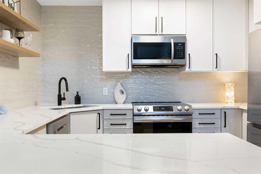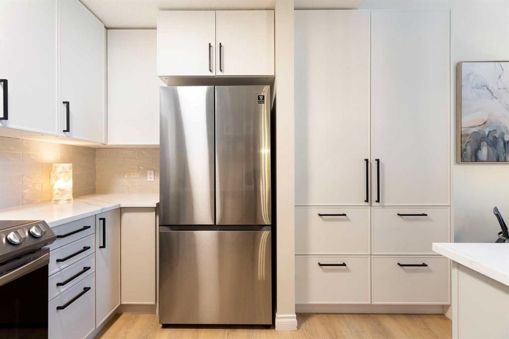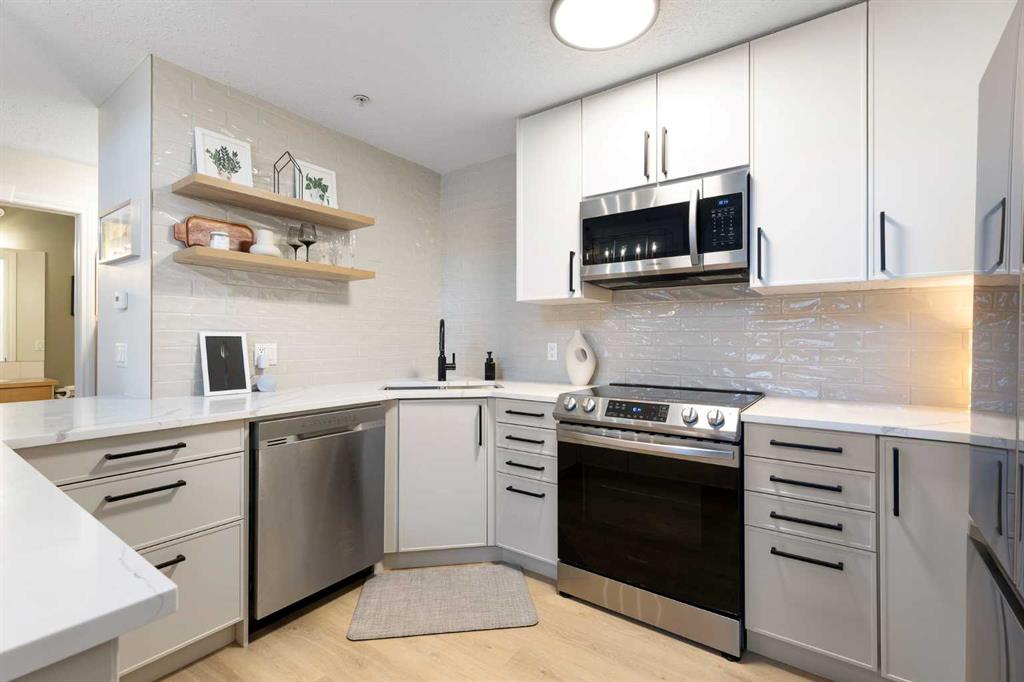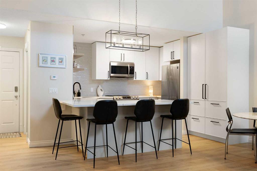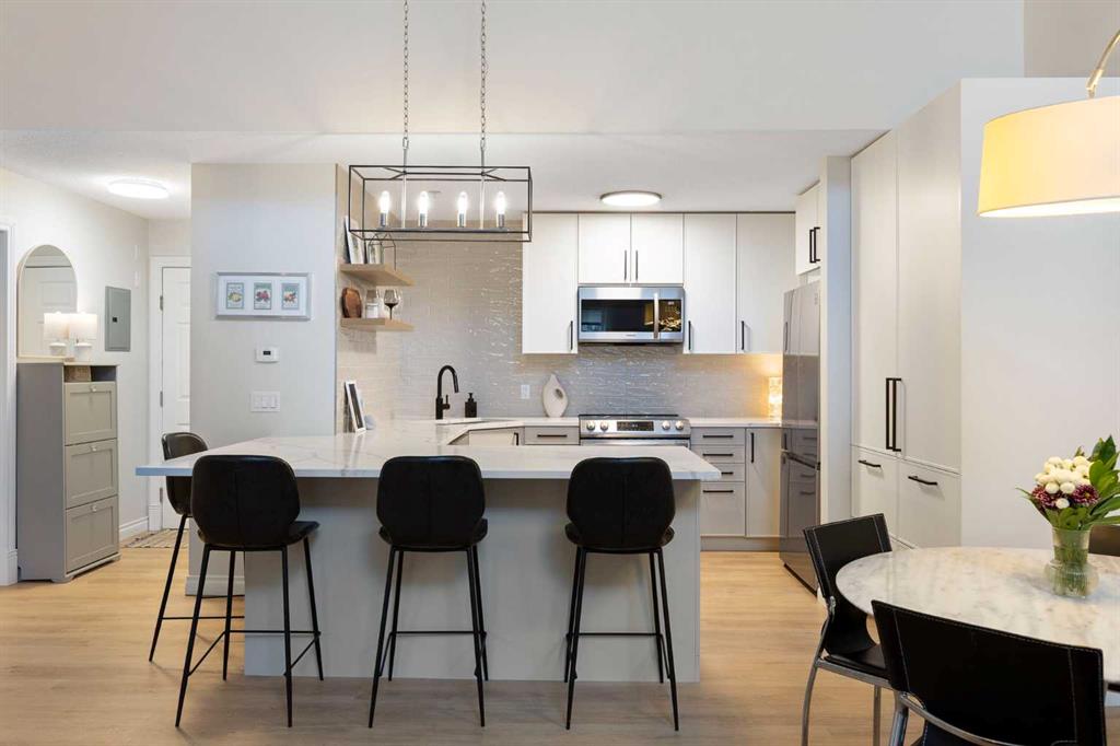 You will find exceptional value in this extensively renovated, 1 bedroom + loft, 2 bathroom condo in South Calgary! Featuring 1,214 sqft of space, this spacious top floor condo is full of high quality renovations and upgrades. As soon as you enter the front door, you will immediately notice the 17-foot ceilings, big windows offering plenty of natural sunlight, and vinyl plank flooring throughout the entire main floor. Next, you will find a beautifully renovated kitchen featuring new cabinets, quartz countertops, large pantry, upgraded stainless steel appliances, and a peninsula island. With a dining room and living room adjacent to the kitchen, this functional, open concept floor plan makes it easy to entertain family and friends! The living room also features a gas fireplace. The large primary bedroom has plenty of natural light with a sliding door leading to your balcony, a walk through closet, and a 4-piece ensuite with soaker tub and shower. Finishing off the main level is an additional 4-piece bathroom, in-suite laundry with new washer & dryer (Dec 2025), and a storage room under the stairs – an extra feature that most units in this complex do not have! Heading up the stairs, you will find a generous sized loft that is perfect for an additional sleeping area, office, or entertainment room. Lastly, this unit features a 20-foot balcony with south exposure, perfect for enjoying many nice summer evenings or relaxing after work. This unit also comes with an underground, titled parking stall and an assigned storage locker. Finally enjoy everything that South Calgary and vibrant Marda Loop has to offer, the perfect blend of urban energy and neighbourhood charm, with trendy cafĂ©s, boutique shopping, and top-rated restaurants just steps from your door. Enjoy a walkable lifestyle surrounded by parks, excellent schools, and quick access to downtown, in one of Calgary’s most desirable places to call home. Do not miss out on this opportunity!