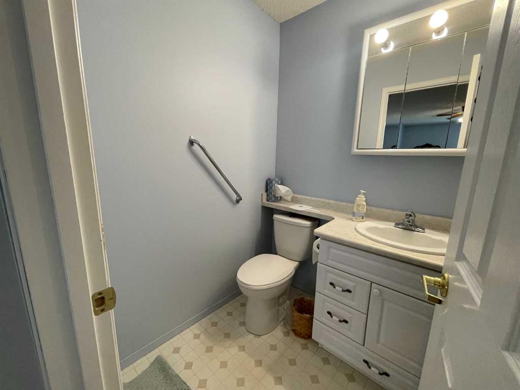 This very well maintained top floor condo unit may be just the ticket for you to get rid of the snow shovels and lawn mower! Campus Green is a great community within the great community of Didsbury. The open plan allows you to have plenty of options for setting up your main living areas. Step inside this unit and into the bright white kitchen with plenty of cabinets and a newer counter-top. The living room and dining area are conveniently located off of the kitchen. Walk through the living room that features a wall style air conditioner and sliding patio doors to the east facing covered balcony. From your balcony you have terrific views of the courtyard/greenspace behind and of the east side of Didsbury and even the countryside beyond. The balcony features a handy storage closet for those items you don’t use everyday. The primary bedroom is spacious and features 2 closets and a 2 piece ensuite. The main bathroom has a nice shower with seat and a large vanity. The second bedroom boasts french doors and a murphy bed wall unit that allows it to be an office and a guest room. The laundry room has additional storage space. This building has secure heated parking, a gathering rec room space and a social area with tables and chairs. Truly a nice place to call home.