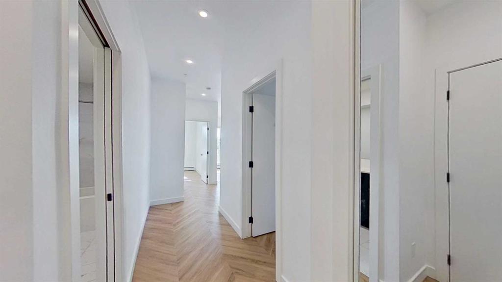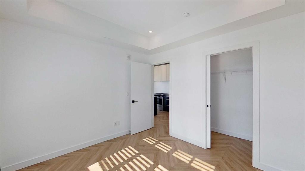 Experience modern living in this exceptional 2-bedroom, 1-bathroom condo, perfectly situated in Calgary’s award-winning University District. This stylish and thoughtfully designed unit features a spacious layout with a unique floor plan and abundant natural light throughout. The modern kitchen is fully upgraded with premium quartz countertops, sleek cabinetry, an elegant backsplash, and a chic eating bar— perfect for casual dining or entertaining. The open-concept design seamlessly connects the kitchen and living areas, enhancing the sense of space and comfort. Both bedrooms are generously sized with ample closet space, and the bathroom is beautifully finished with contemporary fixtures. Ideal for professionals, students, or small families, this condo combines functionality with style. Additional highlights include in-suite laundry, upgraded lighting, and smart storage solutions. A large balcony (152 SF) with breathtaking, unobstructed views, an ideal outdoor retreat for gardening, dining, or simply relaxing in style.” The unit also comes with a titled underground parking stall, adding convenience and peace of mind. The building offers impressive amenities such as a fitness room, bike storage, a cycle room, and a pet wash station—designed to complement your active, modern lifestyle. Located just minutes from the University of Calgary, Alberta Children’s Hospital, Foothills Medical Centre, Market Mall, restaurants, cafés, grocery stores, a movie theatre, parks, and scenic walking trails, this home delivers unmatched urban convenience. Whether you’re a first-time buyer, investor, downsizer, or looking to live close to campus and top medical facilities, this condo is the perfect blend of comfort, luxury, and location.