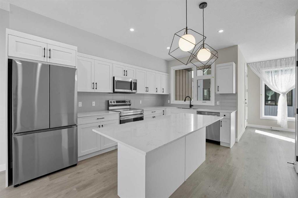 This home, constructed by Logel Homes—an award-winning builder recognized as Calgary’s most decorated multi-family developer—is situated in Sage Hill and offers a blend of quality and functionality. The residence is thoughtfully designed for both comfort and convenience. It includes four bedrooms and 2.5 bathrooms, providing ample space for families or guests. The southeast-facing orientation ensures abundant natural light throughout the home, enhanced by oversized windows and 9-foot ceilings on the main level. Residents enjoy breathtaking views overlooking an environmental reserve, bringing a sense of tranquility to everyday living. High-quality finishes are featured throughout, including full-height cabinets, elegant quartz countertops, beautiful, upgraded lighting fixtures, and stainless-steel appliances. Both a front patio and a covered rear deck extend the living space outdoors, perfect for relaxation and entertaining. This home is ready for possession and comes with no HOA fees, providing added value and flexibility for future homeowners. This house shows 10/10. Don’t miss your chance to call it yours!