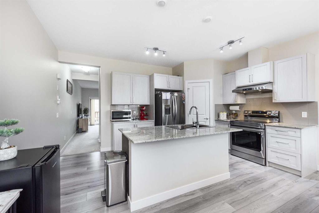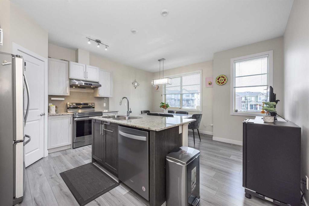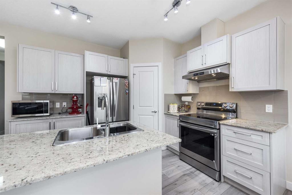 Welcome to this beautifully maintained row townhouse in the highly desirable community of Sage Hill. Perfectly positioned backing onto a tranquil ravine and lush green space, this home offers a peaceful setting rarely found at this price point. The main level features a single attached garage for secure, convenient parking. Inside, a spacious mudroom provides plenty of room to organize everyday essentials. This level also includes a versatile bedroom or office complete with its own full bathroom, an ideal setup for guests, extended family, or working from home. Upstairs, the bright and open main living area is designed for both style and comfort. The upgraded kitchen showcases stainless steel appliances, including a gas range, and offers ample counter space for cooking and entertaining. The adjoining dining area opens directly onto the patio and green space, creating a seamless indoor-outdoor living experience. The living room is warm and inviting, highlighted by a beautifully crafted accent wall and large windows that fill the space with natural light, perfect for relaxing evenings or hosting friends. On the upper floor, you’ll find two generously sized bedrooms, each with its own ensuite bathroom for added privacy and convenience. The primary suite also includes a walk-in closet, providing excellent storage. This home has been exceptionally cared for and is attractively priced, offering outstanding value in a sought-after location. With close proximity to schools, parks, shopping, and public transit, it combines everyday convenience with the serenity of nature right outside your door. Don’t miss the opportunity to make this lovely townhouse your new home. Contact your realtor today to schedule a private showing.