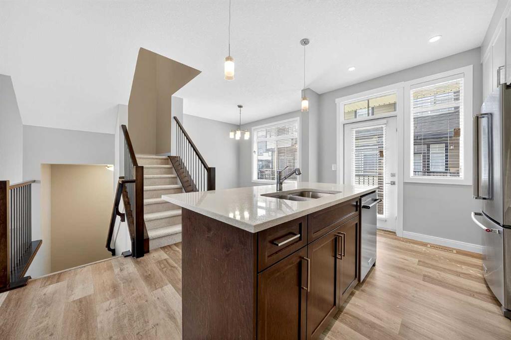Welcome to this stunning, like new 4-bedroom, 3.5-bathroom condo townhouse — pride of ownership shines through from the original owners. Ideally located in the highly sought-after West Springs, this executive home offers both convenience and style near shopping, schools, playgrounds, the Winsport Canada Olympic Park, and the easy access to Stoney Trail. On the entry level, you’ll find a spacious foyer, a bright bedroom, and direct access to the double attached garage. The main level boasts an open-concept layout with large windows that flood the space with natural light. The chef-inspired kitchen features stainless steel appliances, a gas cooktop, built-in oven and microwave, quartz countertops, and ample cabinetry. The adjacent dining and living areas with a serene scenery are perfect for entertaining. Upstairs, you’ll find a Double Master configuration, including 1 luxurious primary suite with a 5-piece ensuite featuring a dual floating vanity, quartz counters, a soaker tub, a separate shower and a walk-in closet. Laundry is conveniently located on the upper level as well. A Fully Finished basement with high ceiling provides a fourth bedroom, 1 bathroom and more storage. This is a family friendly site a block from greenspaces, restaurants and shops for all your daily needs, and expanding commercial spaces. Don’t miss the opportunity to own this exceptional home in one of Calgary’s premier neighborhoods!