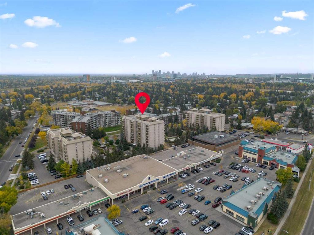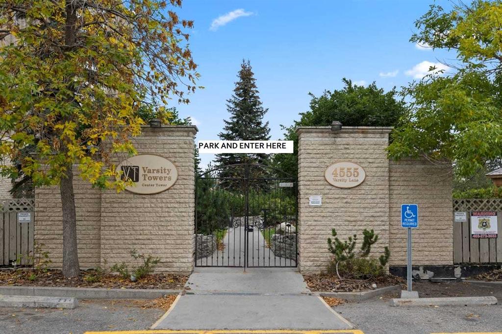 Gaze at sweeping garden and city views from this bright southwest corner unit with extra windows that flood the space with natural light, featuring a spacious layout with two large bedrooms, in-suite laundry, maple cabinets, built-in bookshelves, granite counters, tile backsplash, and modern décor, while a cozy gas fireplace creates the perfect focal point for relaxation and entertaining; included is secure underground parking and residents of Varsity Towers enjoy an unmatched lifestyle with access to an indoor pool, hot tub, steam room, fully equipped fitness centre, party lounge with games and big screen, business centre, library, car wash bay, lush landscaped gardens with BBQ areas, rooftop patios, courtyards, putting green, and greenhouse, all overseen by an on-site building manager providing peace of mind and exceptional service, plus a prime location close to schools, shopping, and dining makes this home the ultimate in urban convenience, and with flooring and paint updates needed it is priced perfectly for you to customize and make it your own. This complex is Pet Friendly and Bicycle storage also available. Condo fee not only covers all the features mentioned above, it also includes ELECTRICTY, WATER & HEAT common area maintenance and much more. Varsity Towers is located near Market Mall, U of C, Foothills Hospital, the Children’s Hospital, and the New University District, with shops, restaurants, and major roadways nearby. This is a great condo, in a very nice complex, in a desirable part of the city.