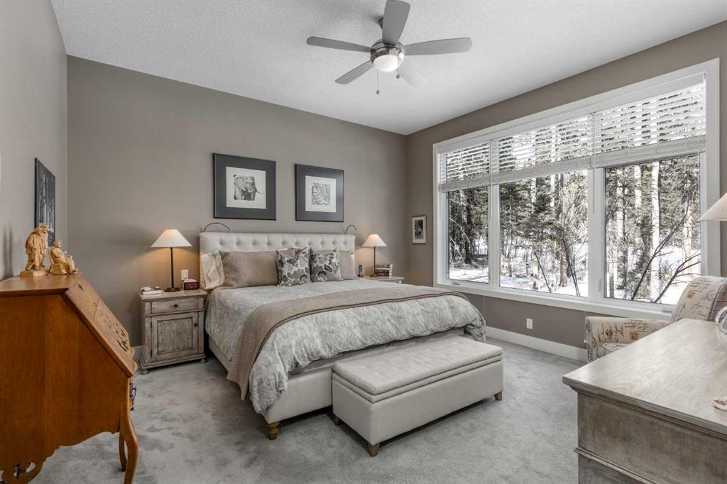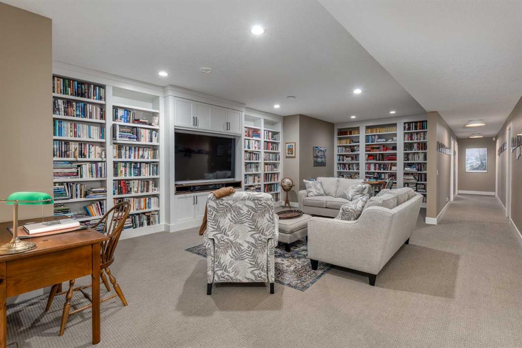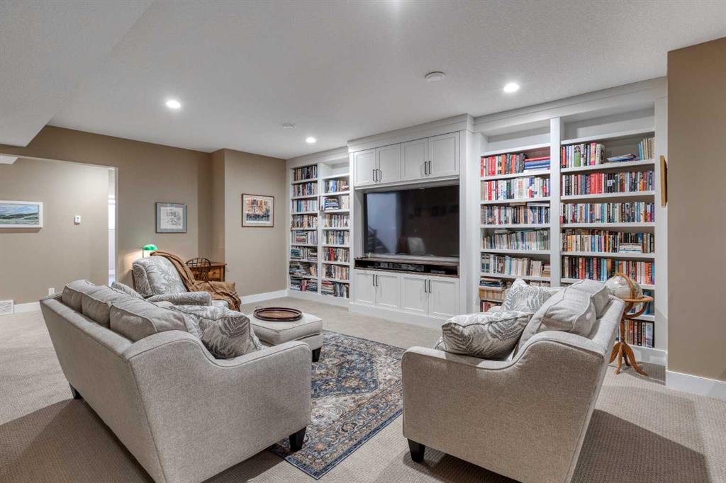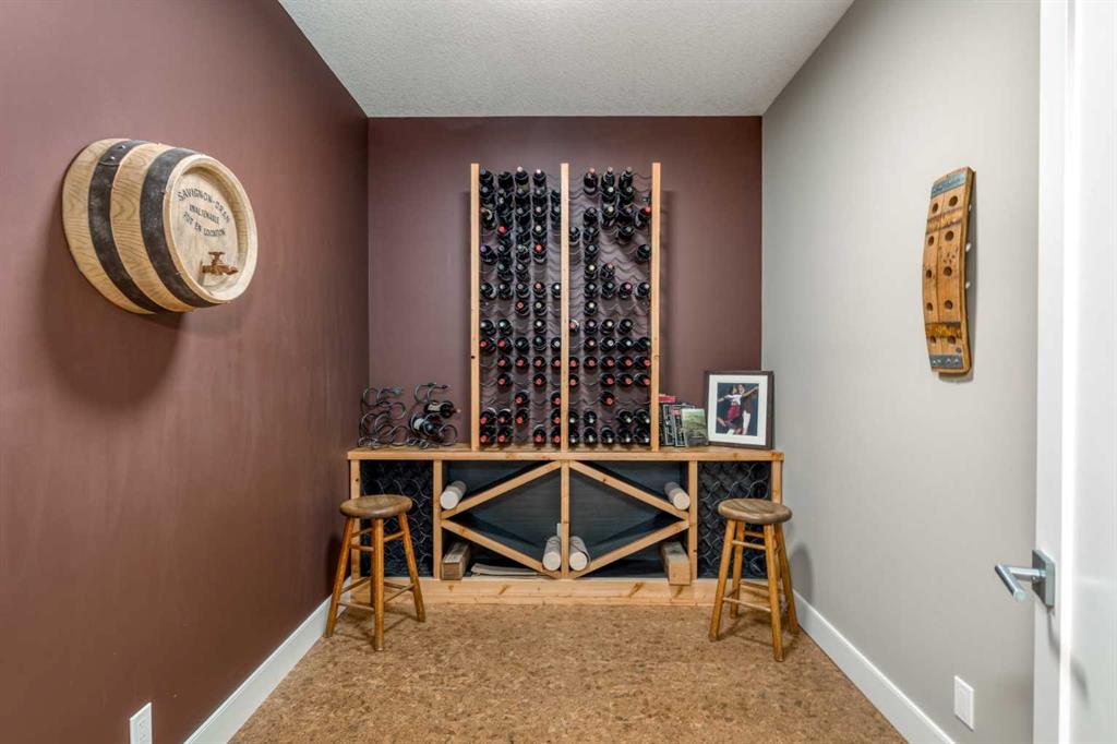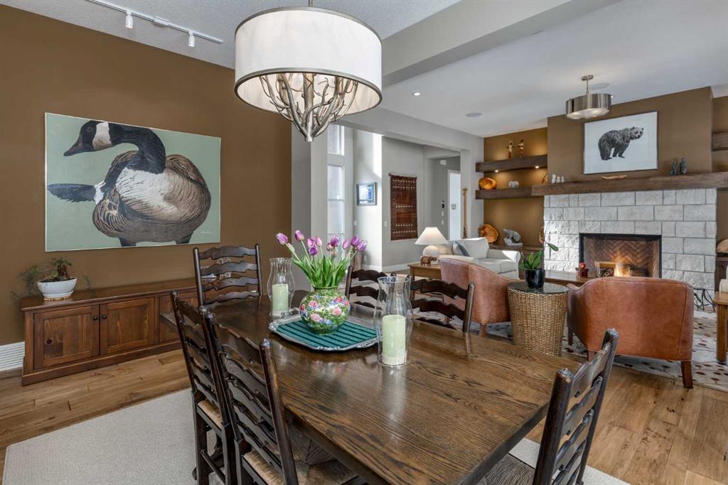 Located on a quiet cul-de-sac within the prestigious Hawks Nest enclave of Priddis Greens and backing directly onto the 8th fairway of the Hawk Course, this exceptional 2020-built estate offers 2,230 sq ft RMS above grade and over 4,000 sq ft of fully developed living space on a professionally landscaped 0.66 acre lot with approximately 285 feet of golf course frontage. Positioned within a designated Dark Sky Preserve, the property offers remarkable privacy and uninterrupted night sky views. In 2023, over $200,000 was invested in substantial upgrades and the basement development, elevating this home well beyond its original build specification. The main level features 10’ ceilings, oversized windows, engineered hickory hardwood flooring, extensive custom built-ins, and a spacious great room anchored by a 44” gas fireplace with integrated 5.1 surround sound and custom cabinetry. The sun-filled chef’s kitchen includes a 6-burner gas range, 48” built-in refrigerator, built-in warming drawer, pot filler, waterfall-edge granite island, and under-cabinet and island lighting. The upgraded cabinets offer ample storage, custom wooden drawer organizers, lazy-Susan corner units, pull-out pot drawers, a spice pull and a pull-out waste basket system. The dining area opens to a fully-fenced, covered composite rear deck complete with gas BBQ line and oversized gas patio heater, all overlooking the fairway. The primary retreat offers a spacious walk-in closet with custom built-ins, and a spa-inspired ensuite featuring heated floors, a steam shower with bench, a soaker tub, dual vanities, seating area with built in cabinets and a private water closet. The main floor office/den provides flexibility and could easily function as a 5th bedroom, if desired. The fully developed lower level (completed in 2023) includes in-floor heat throughout, three additional bedrooms, an expansive recreation room with custom bookshelves and cabinetry, a dedicated wine room, massive storage space, and both a 3-piece and 5-piece bathroom — each featuring heated tile floors and glass-enclosed tiled showers. Major 2023 mechanical upgrades include central air conditioning, tankless hot water system, and a new sump pump with battery backup. The home also includes an HRV system, 200 amp electrical service, and central vac with floor sweeps in both the Kitchen and the Mudroom. The 1153 sq ft, triple-car garage offers 12’ ceilings, 9’ doors, in-floor heat, epoxy-coated floors, hot/cold water service, built-in shelving and an entrance to both the side yard and the Mudroom. Exterior finishes include real Montana Ledge stone siding, acrylic stucco, and timber accents with a cedar vaulted entry. The fully landscaped yard features extensive trees, shrubs and perennials. Don’t miss this rare opportunity to own a 2020-built, golf course estate home with significant enhancements in 2023, and positioned on one of the community’s most desirable lots in Priddis Greens. Contact us for the full list of upgrades.