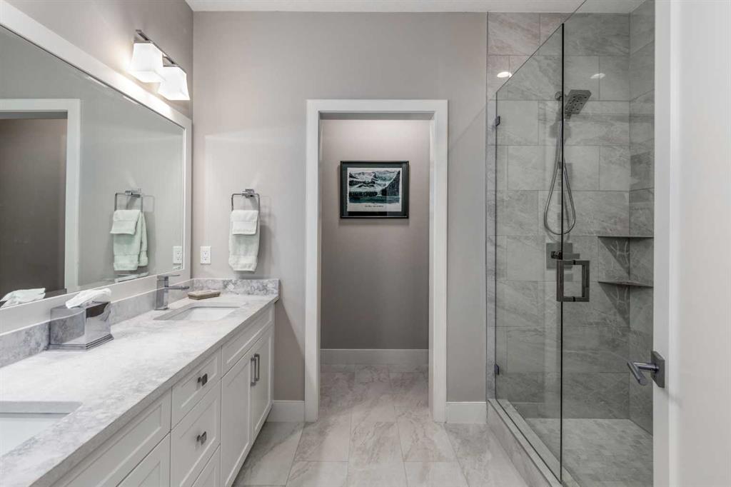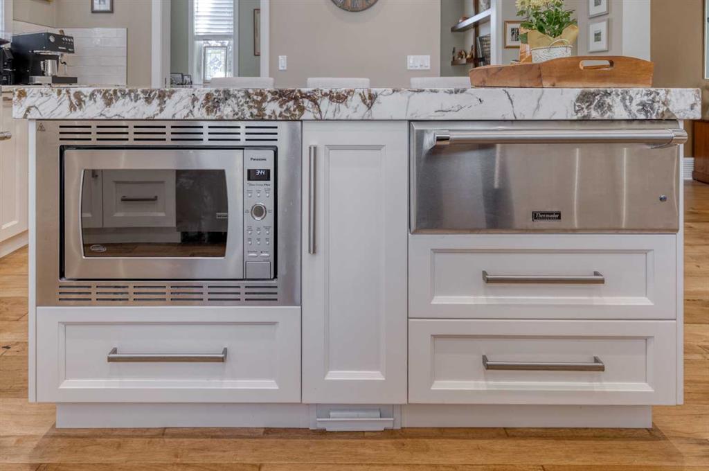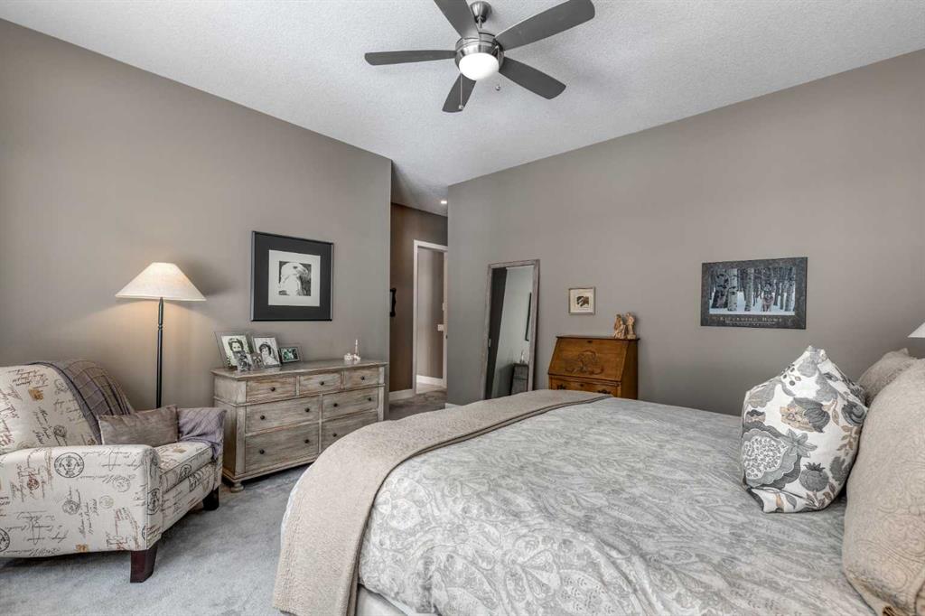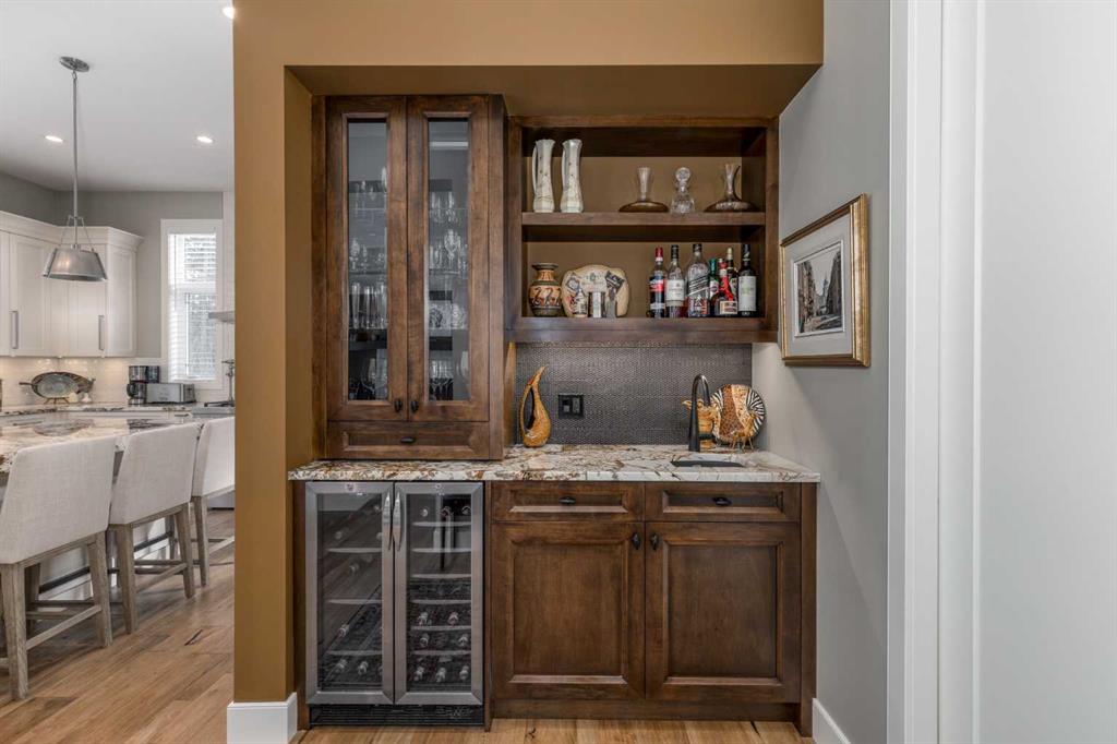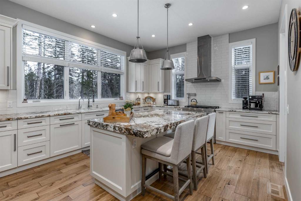 Located on a quiet cul-de-sac within the prestigious Hawks Nest enclave of Priddis Greens and backing directly onto the 8th fairway of the Hawk Course, this exceptional 2020-built estate offers 2,230 sq ft RMS above grade and over 4,000 sq ft of fully developed living space on a professionally landscaped 0.66 acre lot with approximately 285 feet of golf course frontage. Positioned within a designated Dark Sky Preserve, the property offers remarkable privacy and uninterrupted night sky views. In 2023, over $200,000 was invested in substantial upgrades and the basement development, elevating this home well beyond its original build specification. The main level features 10’ ceilings, oversized windows, engineered hickory hardwood flooring, extensive custom built-ins, and a spacious great room anchored by a 44” gas fireplace with integrated 5.1 surround sound and custom cabinetry. The sun-filled chef’s kitchen includes a 6-burner gas range, 48” built-in refrigerator, built-in warming drawer, pot filler, waterfall-edge granite island, and under-cabinet and island lighting. The upgraded cabinets offer ample storage, custom wooden drawer organizers, lazy-Susan corner units, pull-out pot drawers, a spice pull and a pull-out waste basket system. The dining area opens to a fully-fenced, covered composite rear deck complete with gas BBQ line and oversized gas patio heater, all overlooking the fairway. The primary retreat offers a spacious walk-in closet with custom built-ins, and a spa-inspired ensuite featuring heated floors, a steam shower with bench, a soaker tub, dual vanities, seating area with built in cabinets and a private water closet. The main floor office/den provides flexibility and could easily function as a 5th bedroom, if desired. The fully developed lower level (completed in 2023) includes in-floor heat throughout, three additional bedrooms, an expansive recreation room with custom bookshelves and cabinetry, a dedicated wine room, massive storage space, and both a 3-piece and 5-piece bathroom — each featuring heated tile floors and glass-enclosed tiled showers. Major 2023 mechanical upgrades include central air conditioning, tankless hot water system, and a new sump pump with battery backup. The home also includes an HRV system, 200 amp electrical service, and central vac with floor sweeps in both the Kitchen and the Mudroom. The 1153 sq ft, triple-car garage offers 12’ ceilings, 9’ doors, in-floor heat, epoxy-coated floors, hot/cold water service, built-in shelving and an entrance to both the side yard and the Mudroom. Exterior finishes include real Montana Ledge stone siding, acrylic stucco, and timber accents with a cedar vaulted entry. The fully landscaped yard features extensive trees, shrubs and perennials. Don’t miss this rare opportunity to own a 2020-built, golf course estate home with significant enhancements in 2023, and positioned on one of the community’s most desirable lots in Priddis Greens. Contact us for the full list of upgrades.