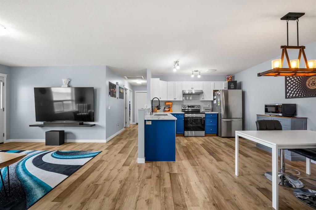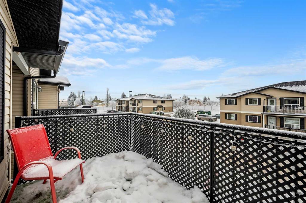Welcome to this bright and spacious top floor 3 bedroom unit in beautiful Bayside Villas with brand new Central Air Conditioning , offered by Strathmores affordable housing program. This South facing, renovated top floor unit offers a well designed open floor plan, modern finishes and an abundance of light throughout the day. The renovated kitchen features shaker style cabinets, stainless steel appliances, a dedicated dining area, pantry storage and quartz counter tops. Enjoy relaxing in the spacious living room with direct access to your south facing balcony perfect for sunsets, entertaining and BBQ’ing. Down the hall you will find the renovated 4 piece bathroom, in suite laundry at the end of the hall and 3 spacious bedrooms including the large primary bedroom. The parking stall is right out front for your convenience with additional guest parking a few stalls away. The condo fees include Heat, water, Sewer, Garbage, Maintenance, Snow Removal, Lawn, and Professional Management. Bayside Villas puts you close to everything you need for comfortable everyday living. Enjoy easy access to scenic greenspaces like Kinsmen Park, perfect for walks, picnics, and outdoor play, and cool off in the summer at Strathmore Water Park. Families will appreciate being near great schools such as Westmount School, Strathmore High School, and Crowther Memorial Junior High School, as well as several other educational options. Everyday conveniences, local shops, dining, and community recreation facilities are just a short drive or bike ride away, all within Strathmore’s friendly and growing small-town setting. **Buyers must be pre-approved under the Town of Strathmore Perpetual Affordable Housing (PAH) Program.