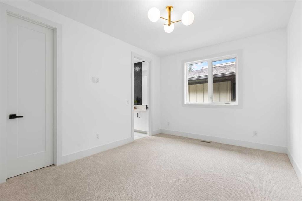 Extraordinary luxury residence in prestigious Patterson Heights-The Point- with over 4500 sq ft of living space, where thoughtful design and upscale finishes define every detail. As you enter, you’re greeted by a grand entrance, boasting a floor to ceiling custom built closet. To your right is a beautifully appointed mudroom featuring a walk-in closet and impressive floor to ceiling wall unit, with direct access to the oversized double garage that’s fully equipped with EV charging outlets, gas rough in for heater, hot and cold water taps. A full bathroom featuring quartz countertops and a floor-to-ceiling glass shower. Soaring 10 ft ceilings and wide vinyl plank flooring flow throughout, creating a seamless, elegant feel. The cozy living room is enhanced by a modern wall unit and ambient LED lighting, while the custom bar area complete with bar fridge, is perfect for entertaining. A private bright gym space with recessed lighting, sleek floating shelving and plenty of room for fitness equipment. The open riser staircase, paired with a PRIVATE ELEVATOR for ultimate convenience, leads to a show-stopping second floor. A light-filled home office overlooks a large window, and a modern half-bath. The stylish dining area is anchored by a built-in LED-lit beautiful wall unit, the glass sliding doors provide access to a balcony with breathtaking views of downtown Calgary. The coffered ceiling family room stuns with an art-block feature wall and gas fireplace. The sliding glass door gives access to a fully finished, landscaped backyard that backs onto serene green space, where wildlife sightings are frequent and peaceful. The kitchen is a true centerpiece with an elegant quartz waterfall island and hidden cabinetry, two-tone modern cabinets, high-end stainless appliances, and a fully equipped spice kitchen for hosting large gatherings. A modern kitchen nook with an exquisite light fixture completes this level. The top floor is an oasis of luxury, starting with a grand primary suite behind French doors. Enjoy a private balcony with views of the green space, a juice bar, in-floor heating in the en-suite, and a spa-style bath featuring a freestanding tub, floor-to-ceiling glass steam shower with rainfall head and granite seating. The second and third bedrooms share a beautiful Jack & Jill bathroom with quartz counters, and a fourth bedroom along with its own full bath and walk-in closet. Don’t miss the thoughtfully finished laundry room. The bonus room is a standout, with downtown views, and another wall unit. This level boasts 9 ft ceilings, continuing the home’s spacious and airy feel. ADDITIONAL UPGRADES: Basement rough in under slab heating, 75 gallon hot water tank, 2 high-efficiency furnaces, 2 central A/C units, extensive built-ins. The exterior is fully landscaped, composite rear deck with a gas line.This is a true masterpiece offering luxury, comfort, and functionality across all three levels complete with elevator access. A rare offering in an exceptional location.