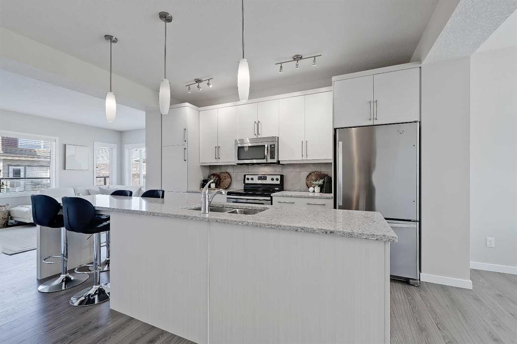 Welcome to refined townhome living, set within one of Cochrane’s most scenic and thoughtfully planned communities! Backing onto rolling natural landscapes with elevated sightlines, this modern three-storey residence offers the rare balance of contemporary design, functional space, and everyday comfort, all just minutes from downtown Cochrane, the Bow River pathway system ,and the Spray Lakes Sports Center.