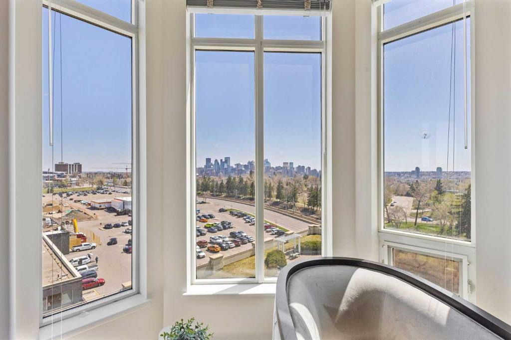 Relax by the cozy fireplace in the expansive living area while soaking in breathtaking, unobstructed views of downtown Calgary. The spacious primary retreat boasts a spa-inspired 5-piece ensuite with dual vanities, a deep soaker tub, and a separate shower—an ideal space to unwind at the end of the day. This exceptional home also includes one titled, heated underground parking stall and an assigned storage unit for added convenience. Residents of the Renaissance enjoy exclusive access to world-class amenities, including a private concierge, fitness centre, games and craft rooms, a movie theatre, meeting room, outdoor terrace, and two luxurious guest suites. An elevator offers direct indoor access to North Hill Shopping Centre, while the nearby C-Train station provides quick, effortless access to downtown and beyond—just minutes away. Experience the perfect blend of comfort, convenience, and sophistication in this truly remarkable home. New staging furniture may be negotiated with price.