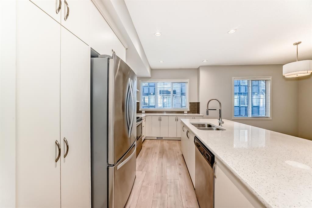 **AMAZING OPPORTUNITY** Welcome to Cedarglen’s Elements at Nolan Hill! This bright and spacious end unit townhouse offers over 1,700 sq ft of stylish living space with 3 bedrooms and 2.5 bathrooms—perfect for families, professionals, or anyone looking for low-maintenance living in a vibrant community. The entry level welcomes you with a versatile flex room ideal for a home office, gym, hobby space, or guest room, along with convenient access to the oversized double garage—perfect for vehicles, gear, and extra storage. Upstairs, you’ll find a beautifully open-concept main floor featuring a modern kitchen complete with stainless steel appliances, quartz countertops, subway tile backsplash, and a large island that’s perfect for entertaining. The spacious dining and living areas flow seamlessly onto a private deck equipped with a BBQ gas line—ideal for summer evenings. The top floor features a generously sized primary bedroom with a walk-in closet and 4-pc ensuite feat. double sinks and a large glass shower. Two additional bedrooms, a full bath, and a convenient upper-floor laundry area with Whirlpool washer and dryer round out the level. This well-managed complex showcases a stylish Hardie Board and stone exterior, and your condo fees include lawn care and snow removal. Enjoy the beautifully landscaped green spaces, visitor parking, and walkable access to local shops, parks in this welcoming neighbourhood. Don’t miss your chance to call this exceptional unit home.